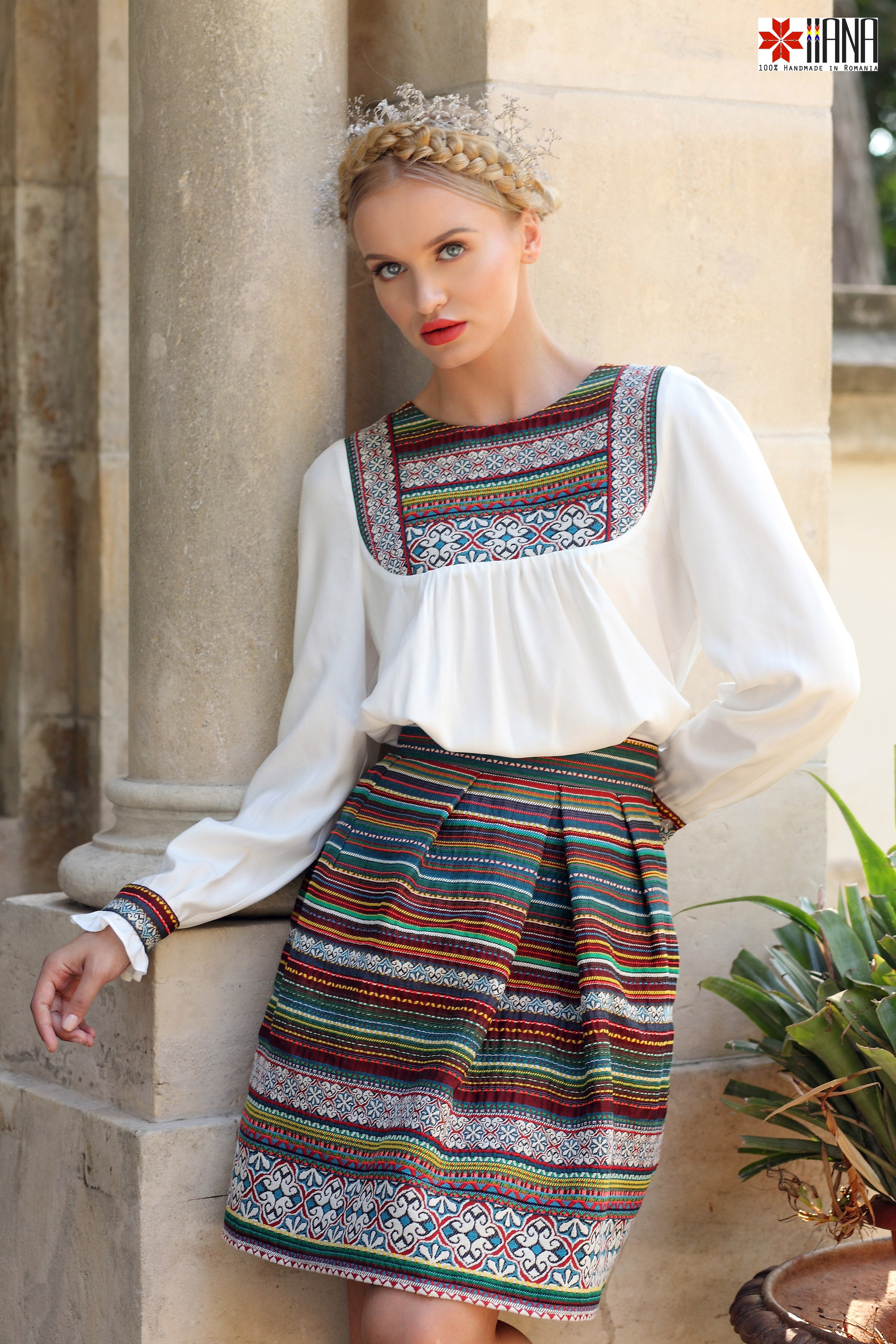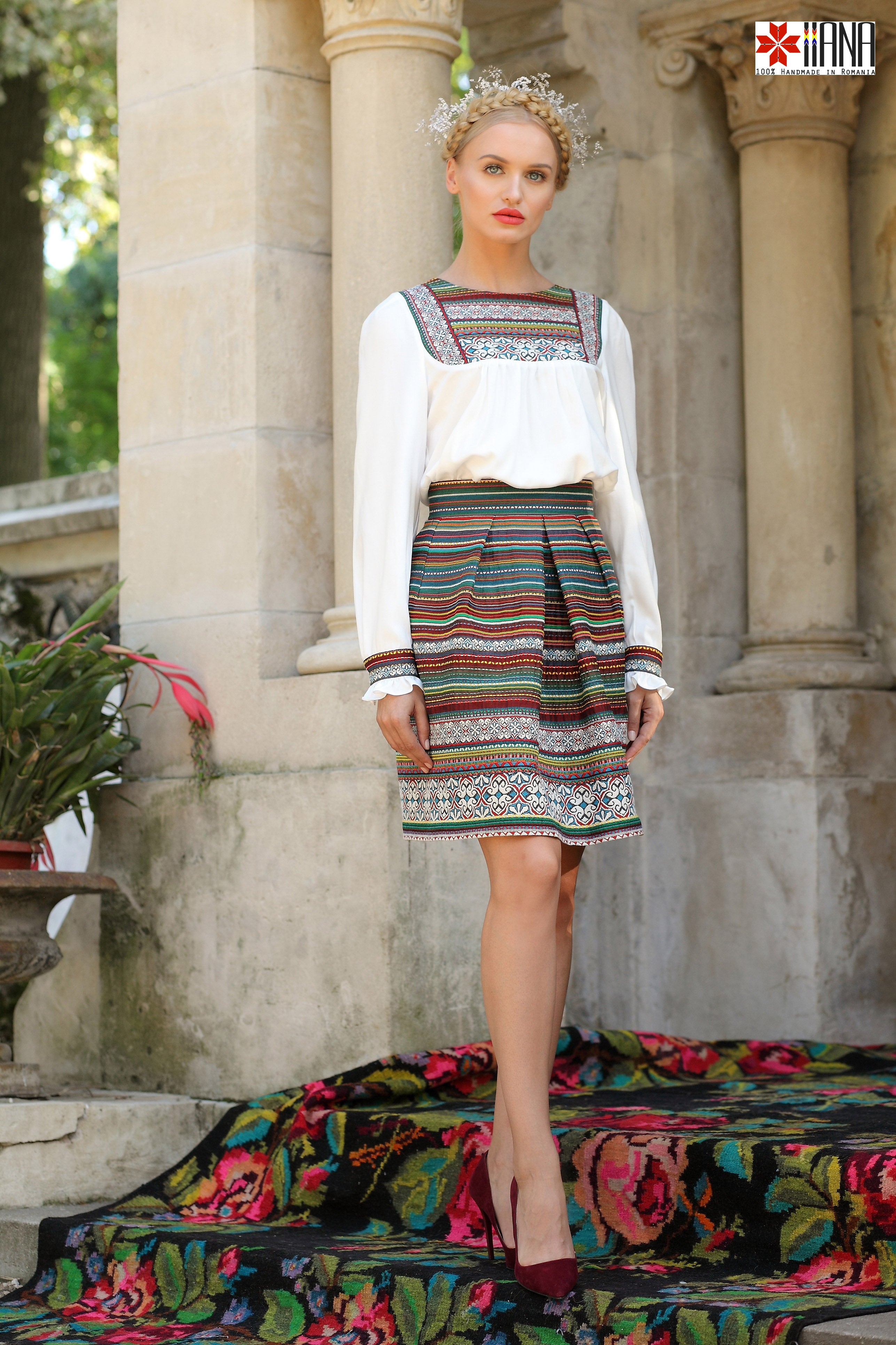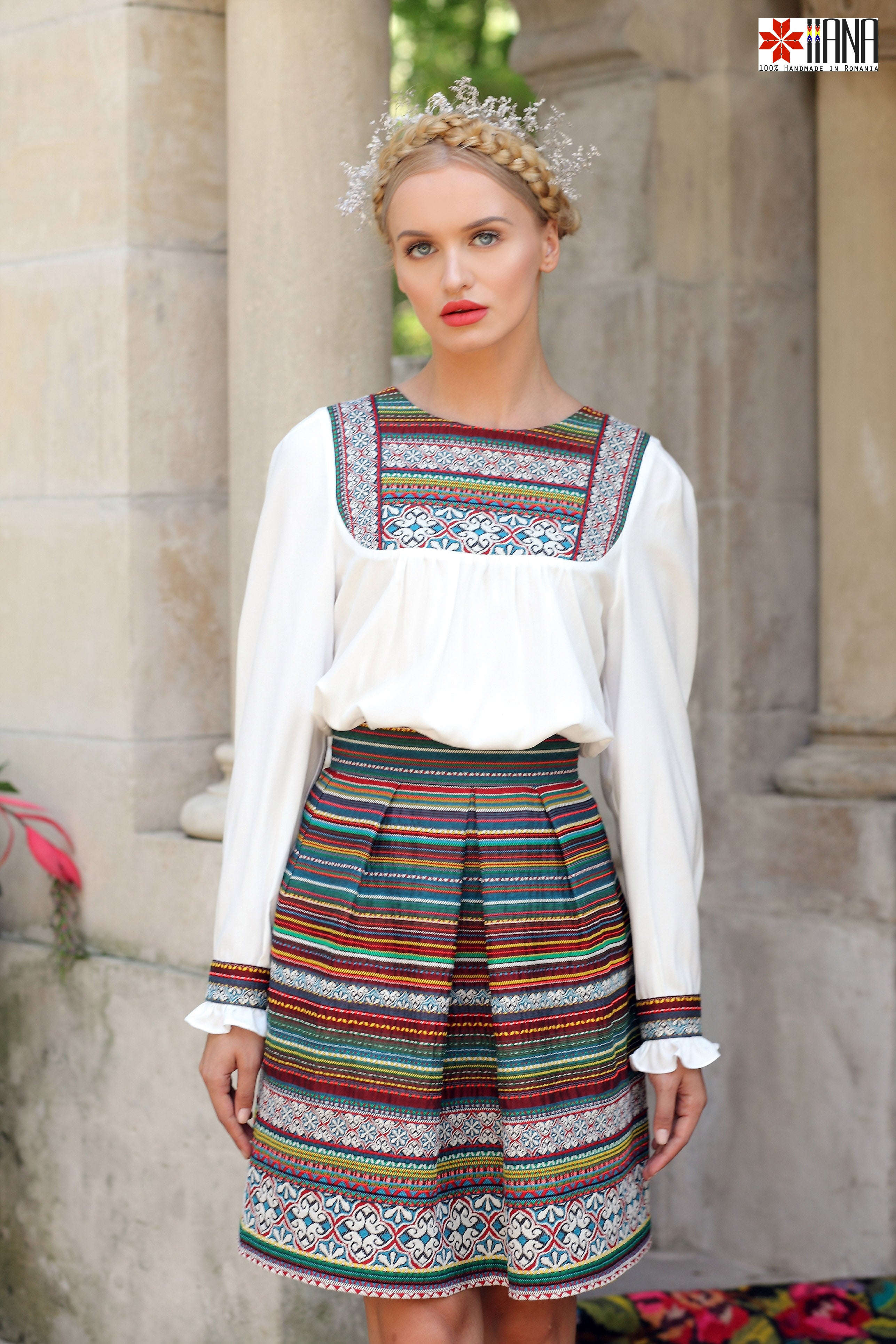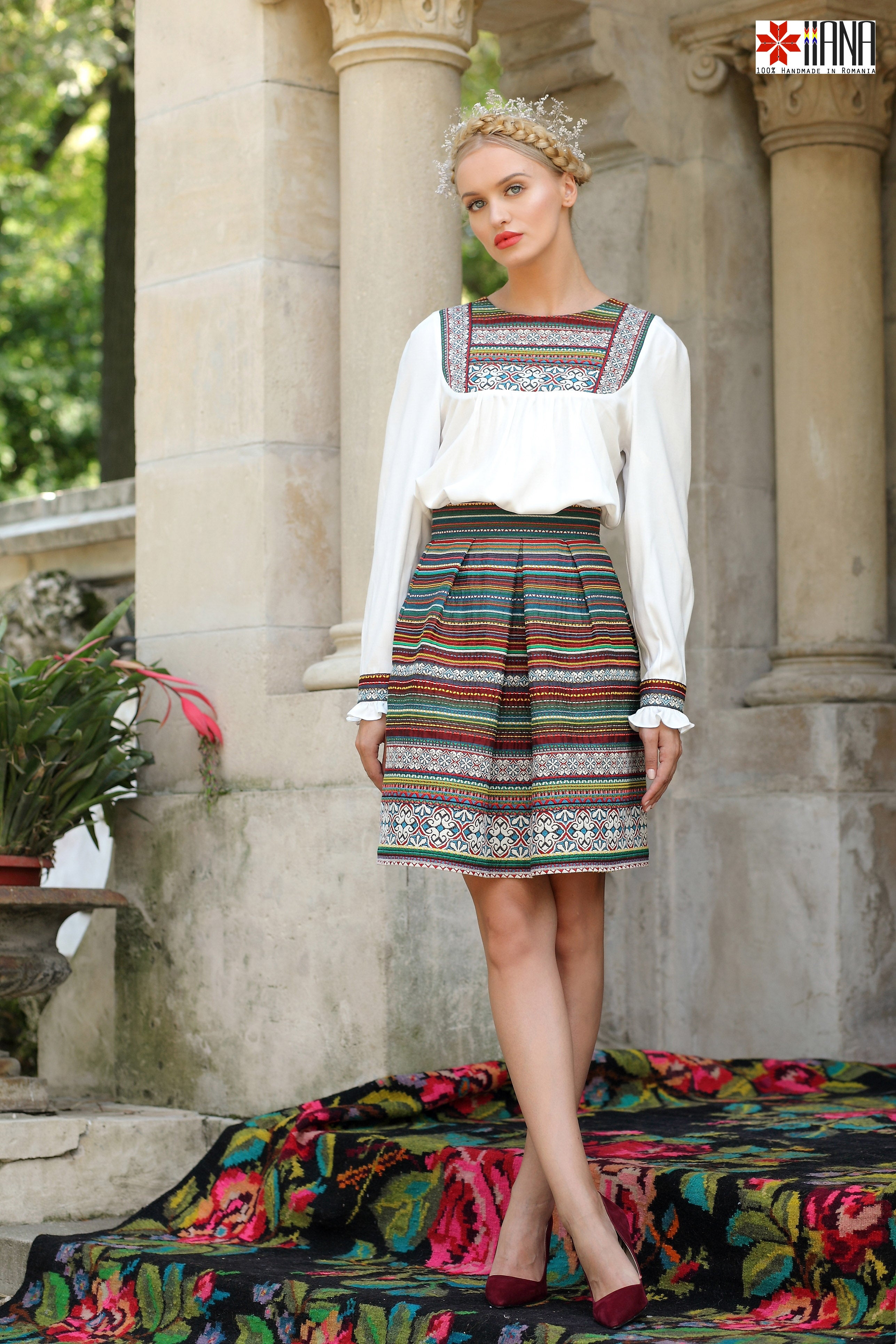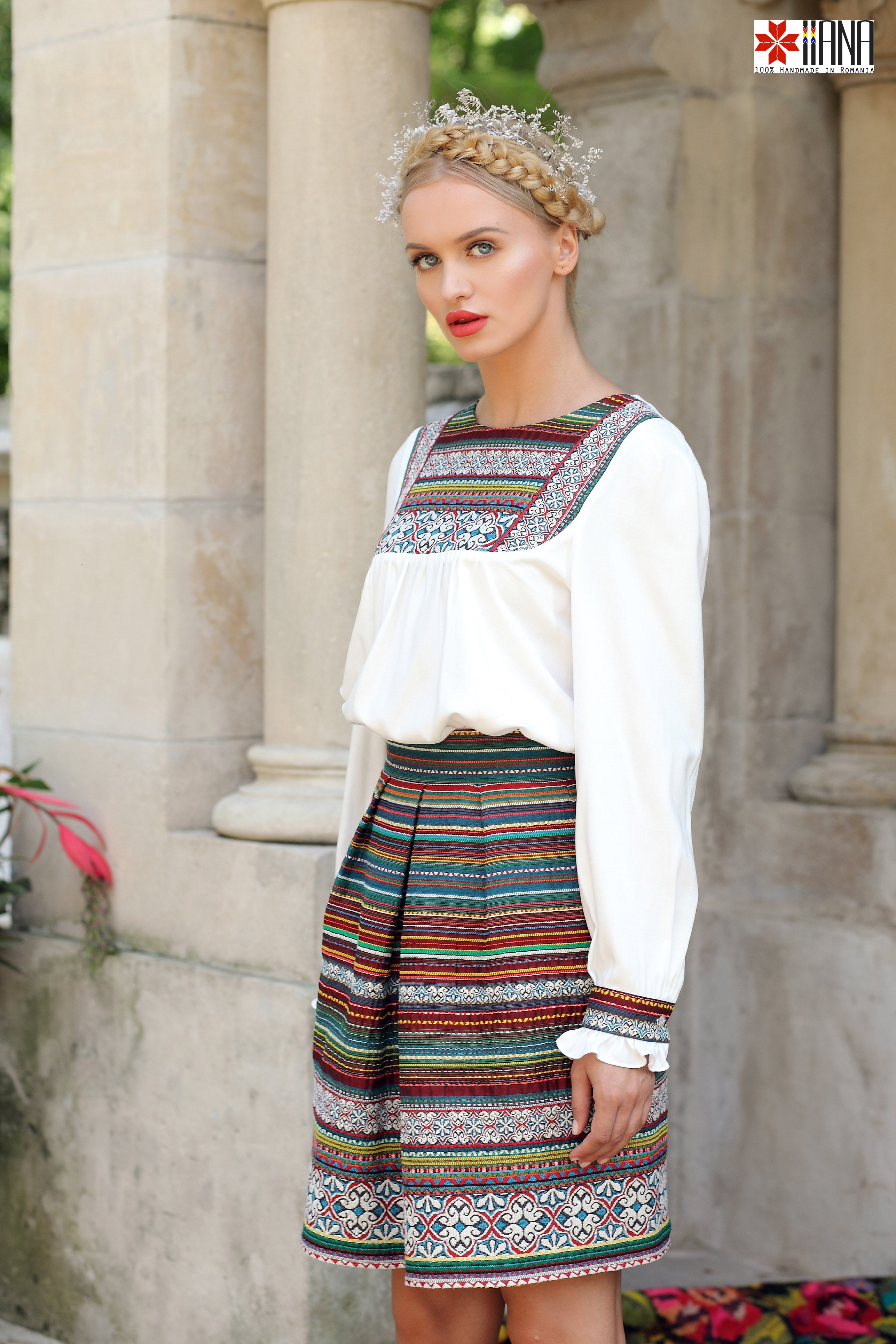 Fusta Populară de Horă este confecționată din brocart de mătase, țesut cu motive geometrice și florale complexe. Aceasta are o croială tip "clopoțel", cu talie medie, este căptușită și se închide la spate cu fermoar ascuns. Pe față și pe spate fusta, are câte trei pliuri orientate spre interior, care dau volum exact cât este nevoie fară a evaza foarte mult croiala fustei. Fusta poate fi purtată împreună cu Cămașa de Horă, ca și costum dar și separat cu ie sau bluză.