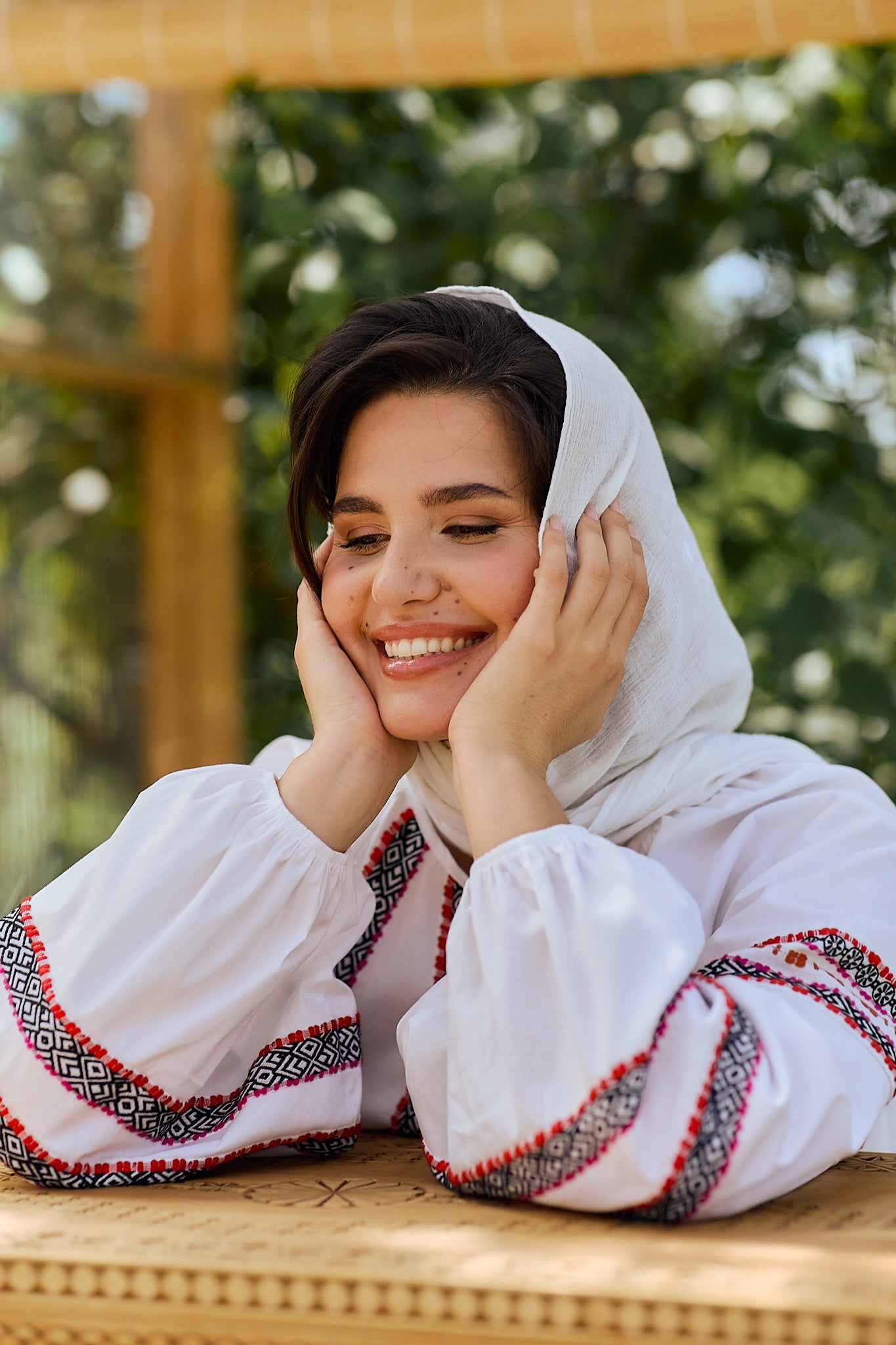 Ia stilizată Olimpia este confecționată din poplin de bumbac