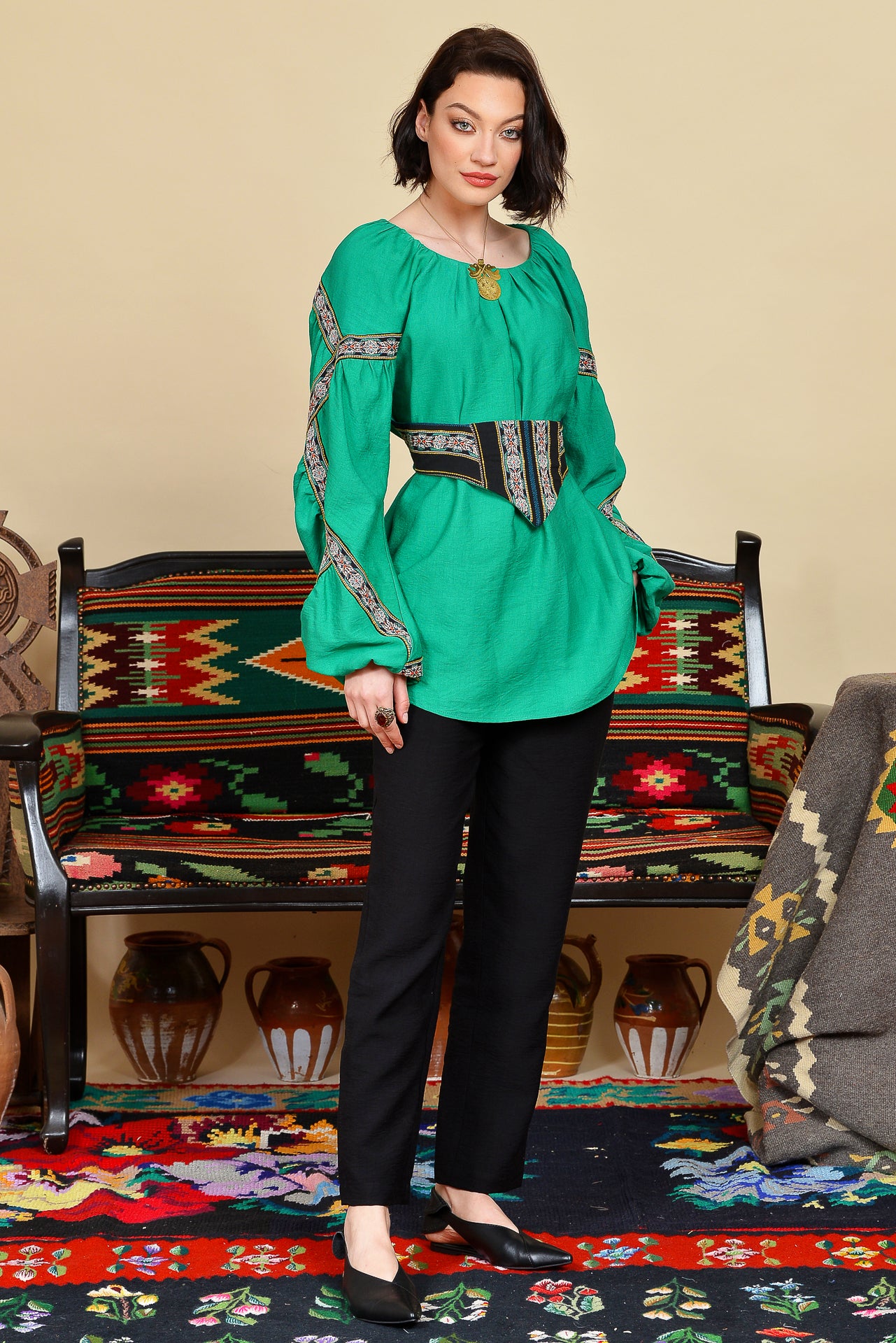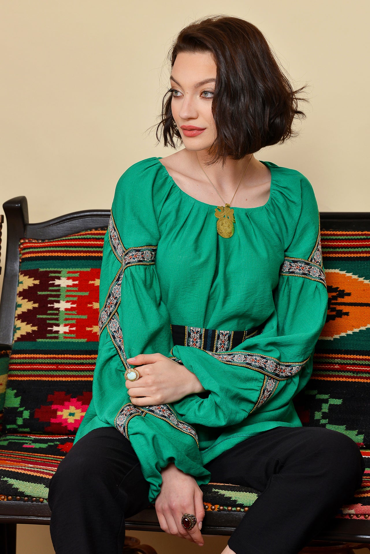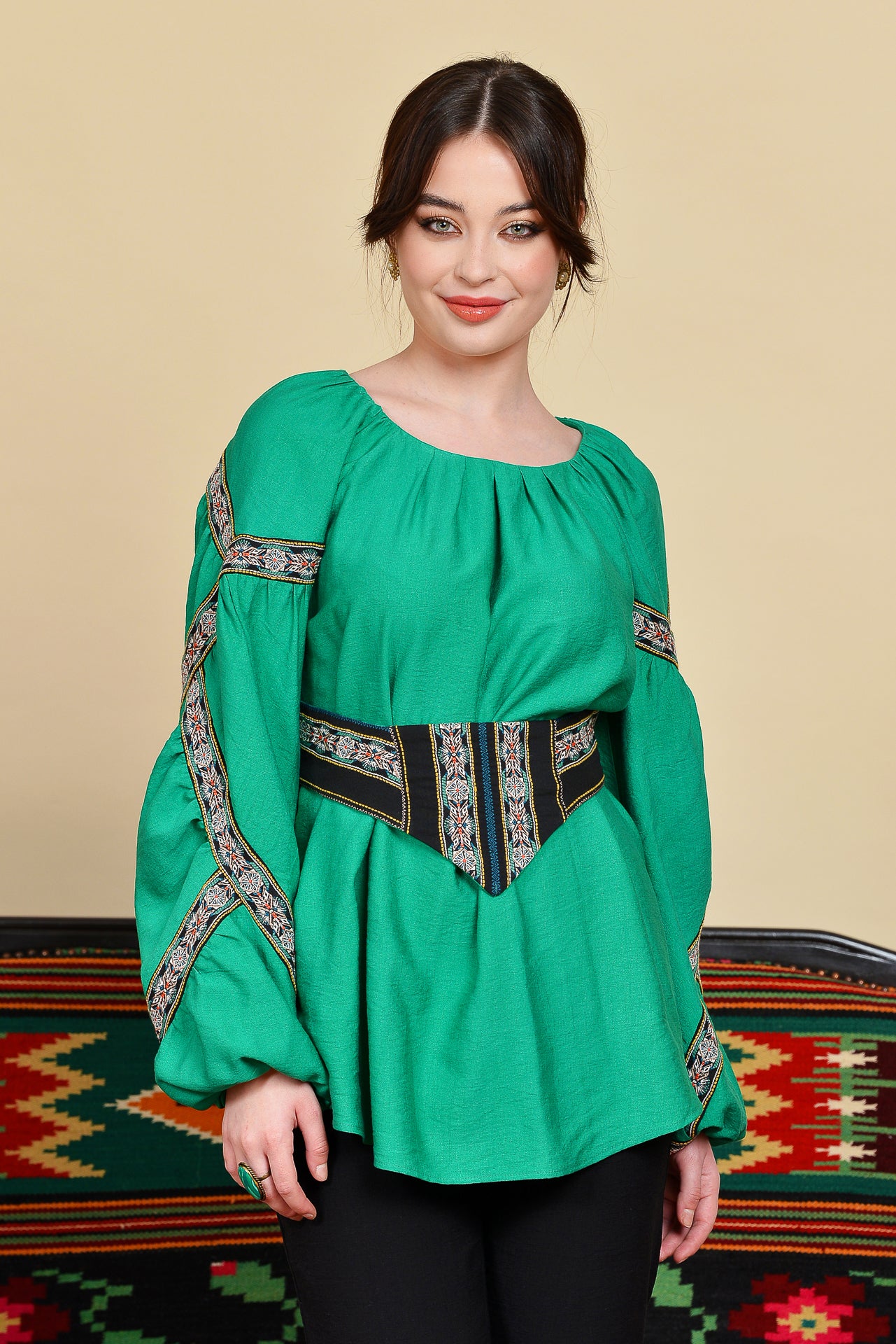 Ia stilizată Venera este confecționată din viscoză albă cu in și jacquard etnic țesut cu motive