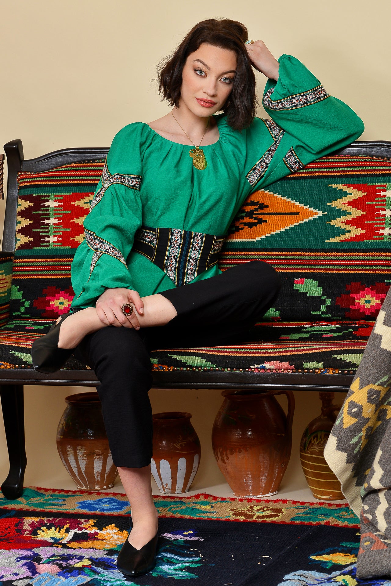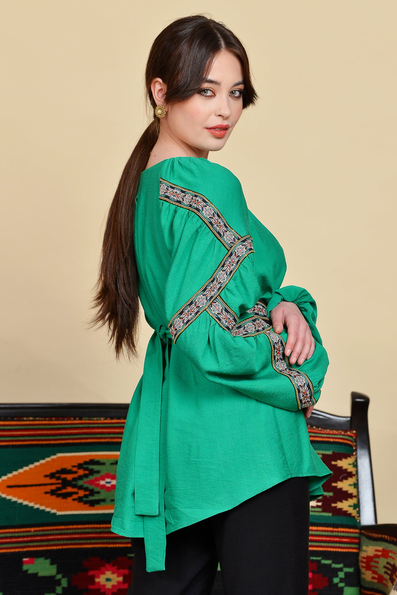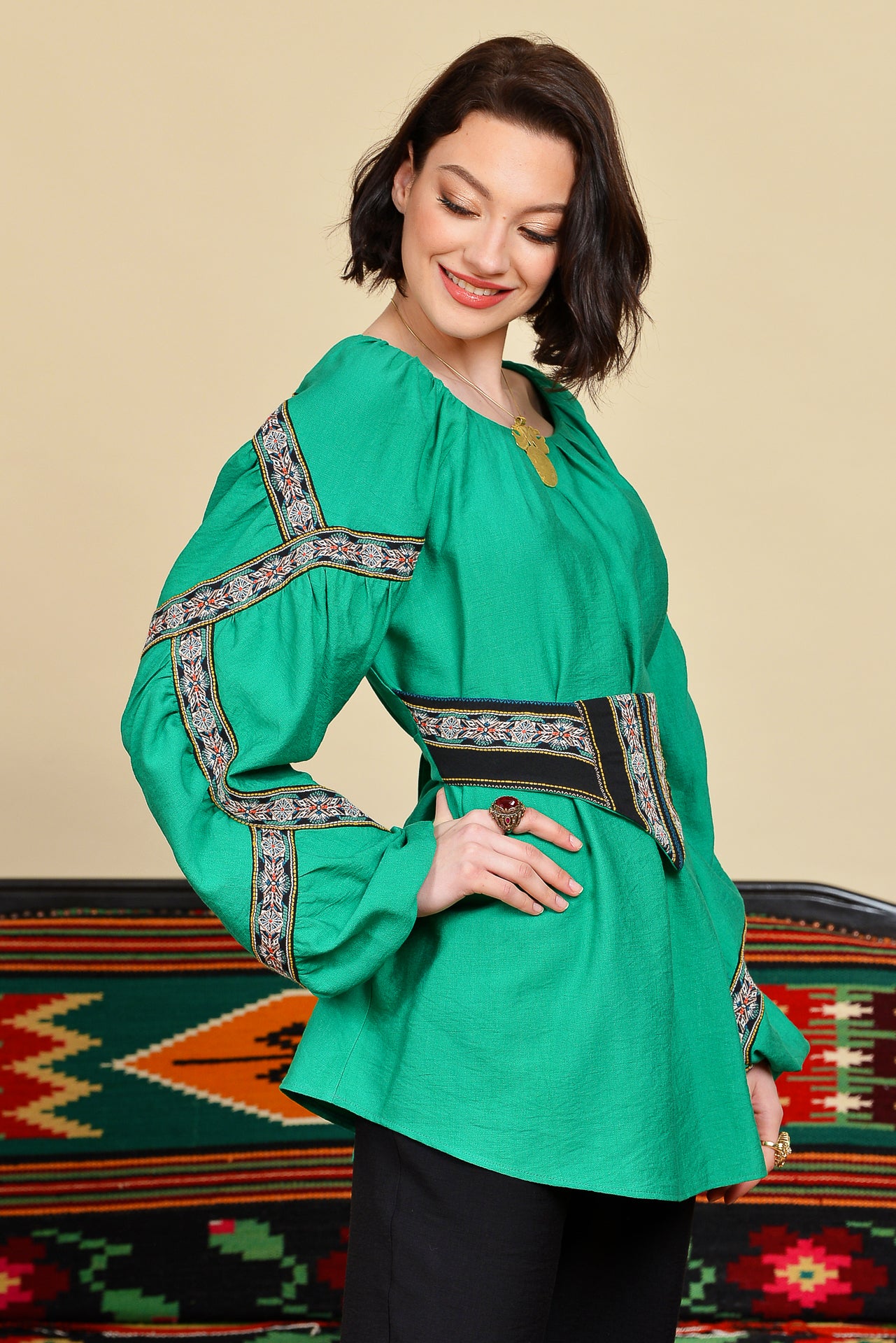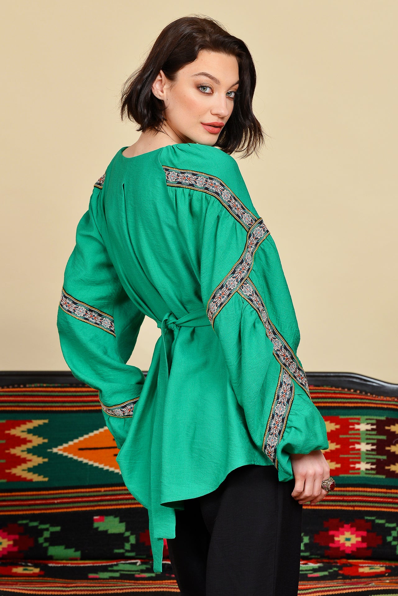 Ia stilizată Venera este confecționată din viscoză albă cu in și jacquard etnic țesut cu motive