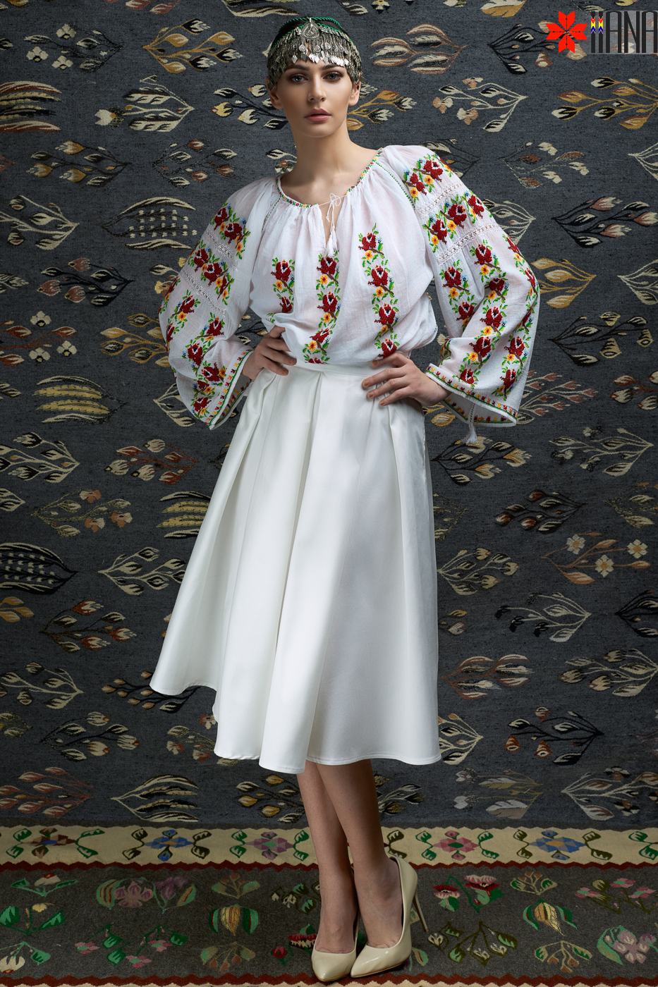Ie Traditionala Romaneasca Maneca Lunga Motivul Inflorata