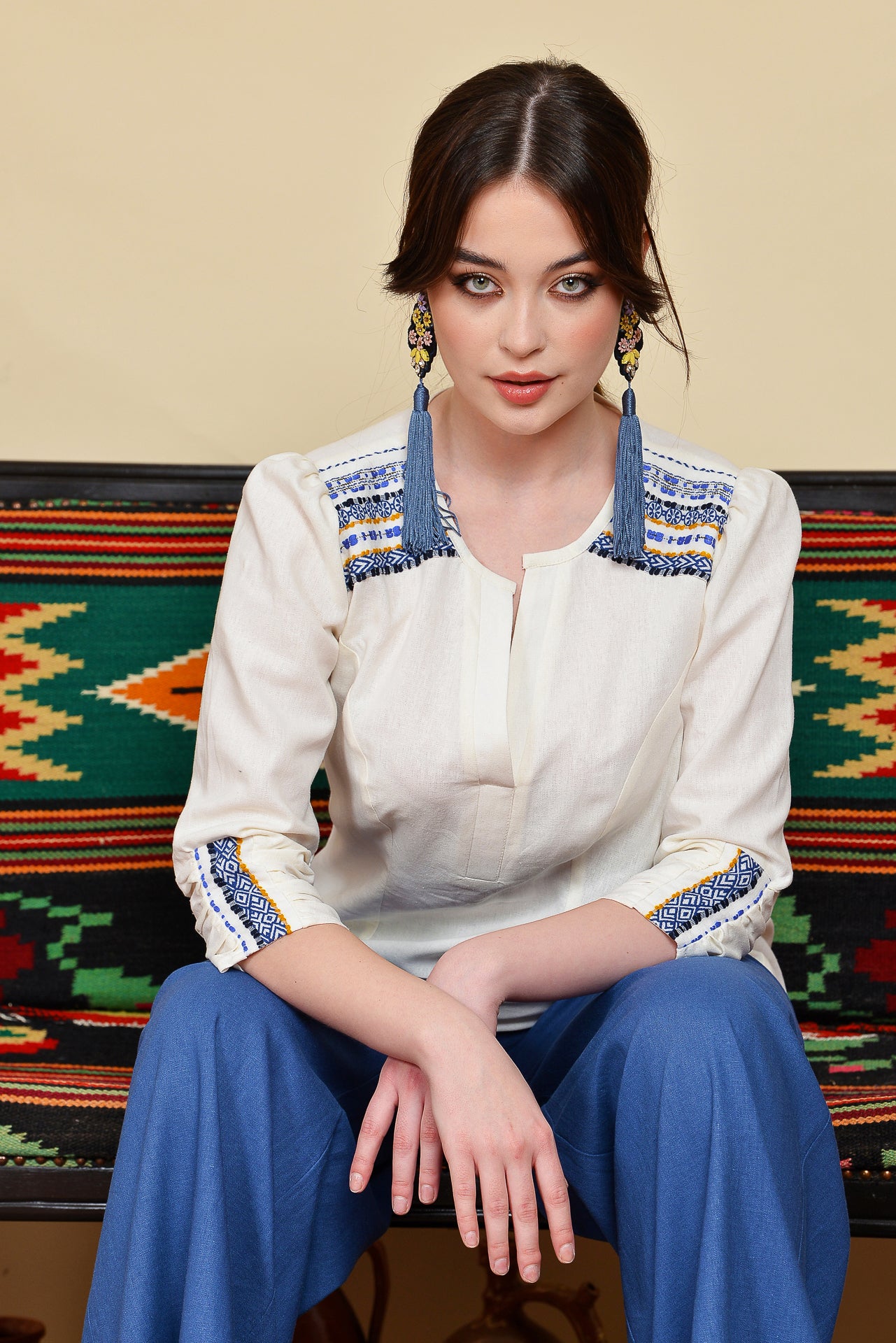 Pantalonii se pot asorta foarte ușor cu cămașa din in și jacquard etnic albastru: https://www.iiana.ro/camasa-din-in-si-jacquard-etnic-albastru