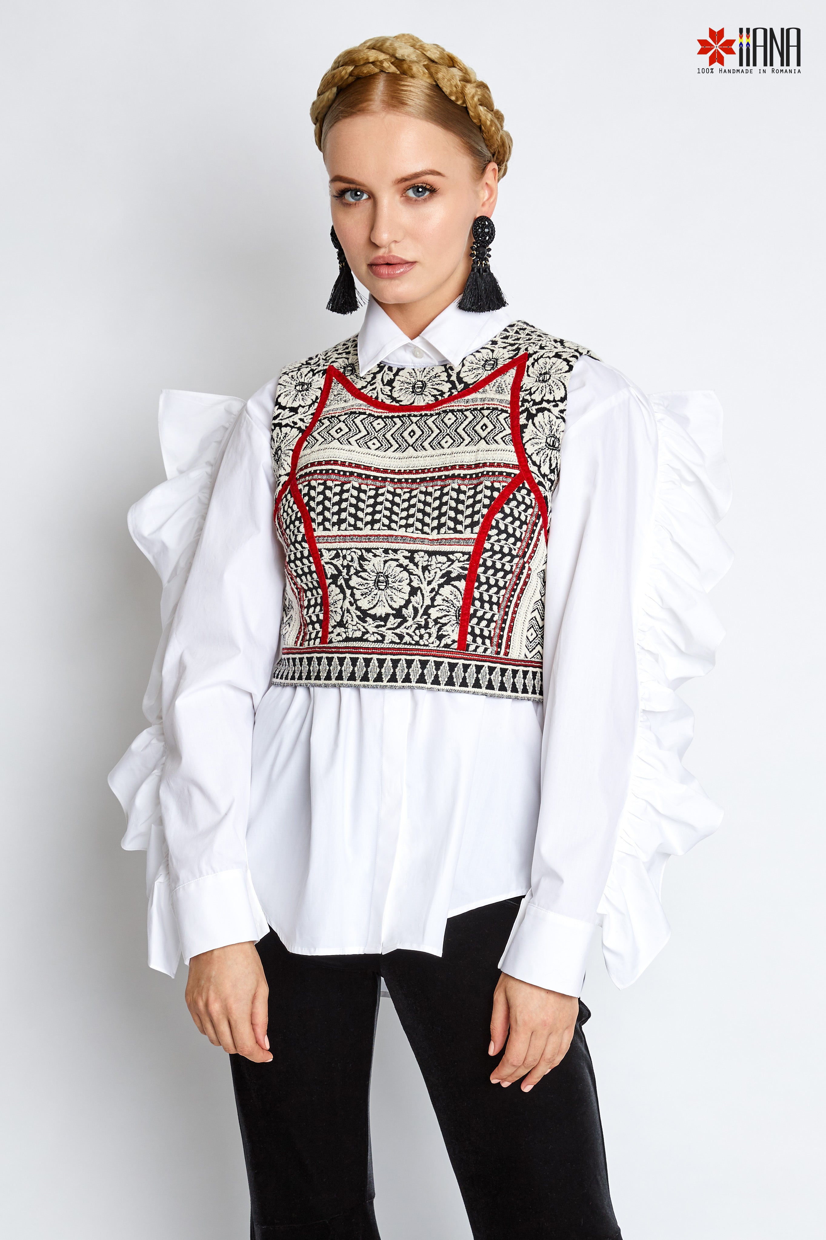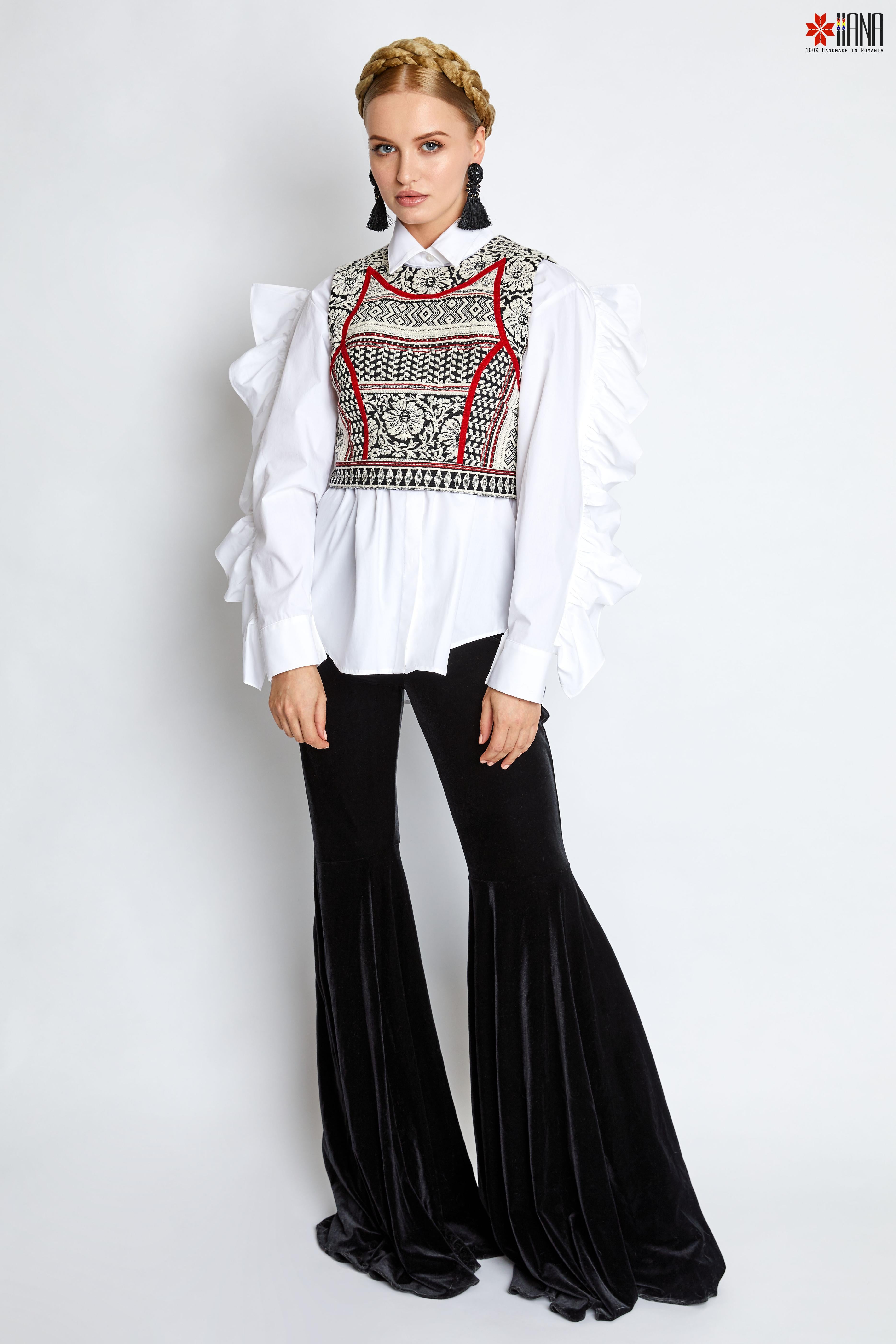 O piesă spectaculoasă, inspirată din tradiția românească, reinterpretat într-o viziune modernă și sofisticată. Designul modern și versatil al pieptarelor stilizate este "semnătura" brandului românesc IIANA.