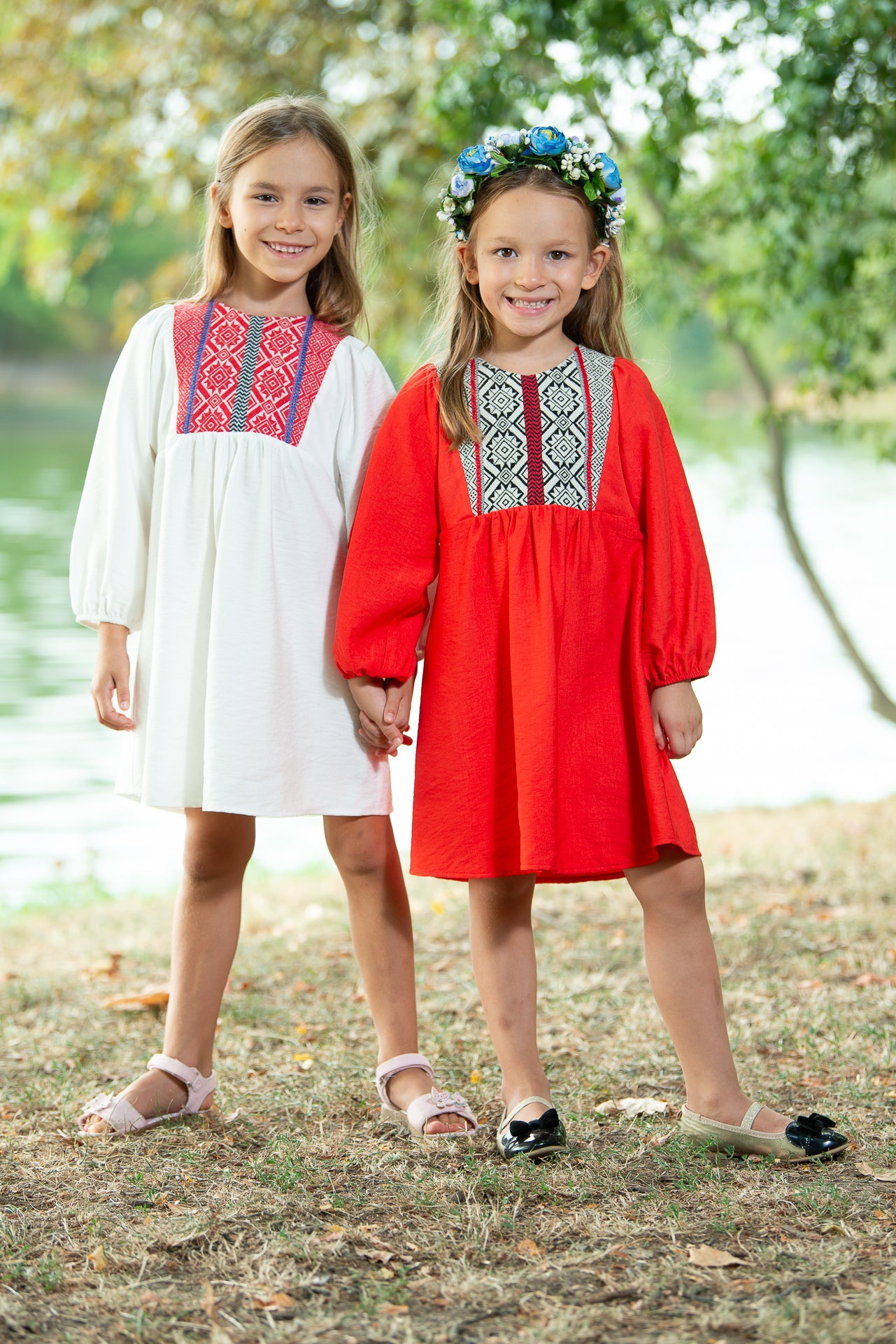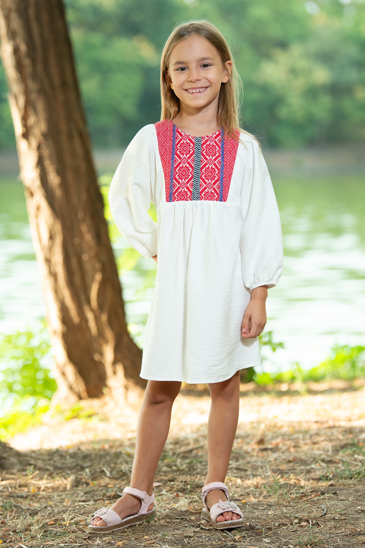 Rochița tradițională Marta de fetițe are o croiala midi,