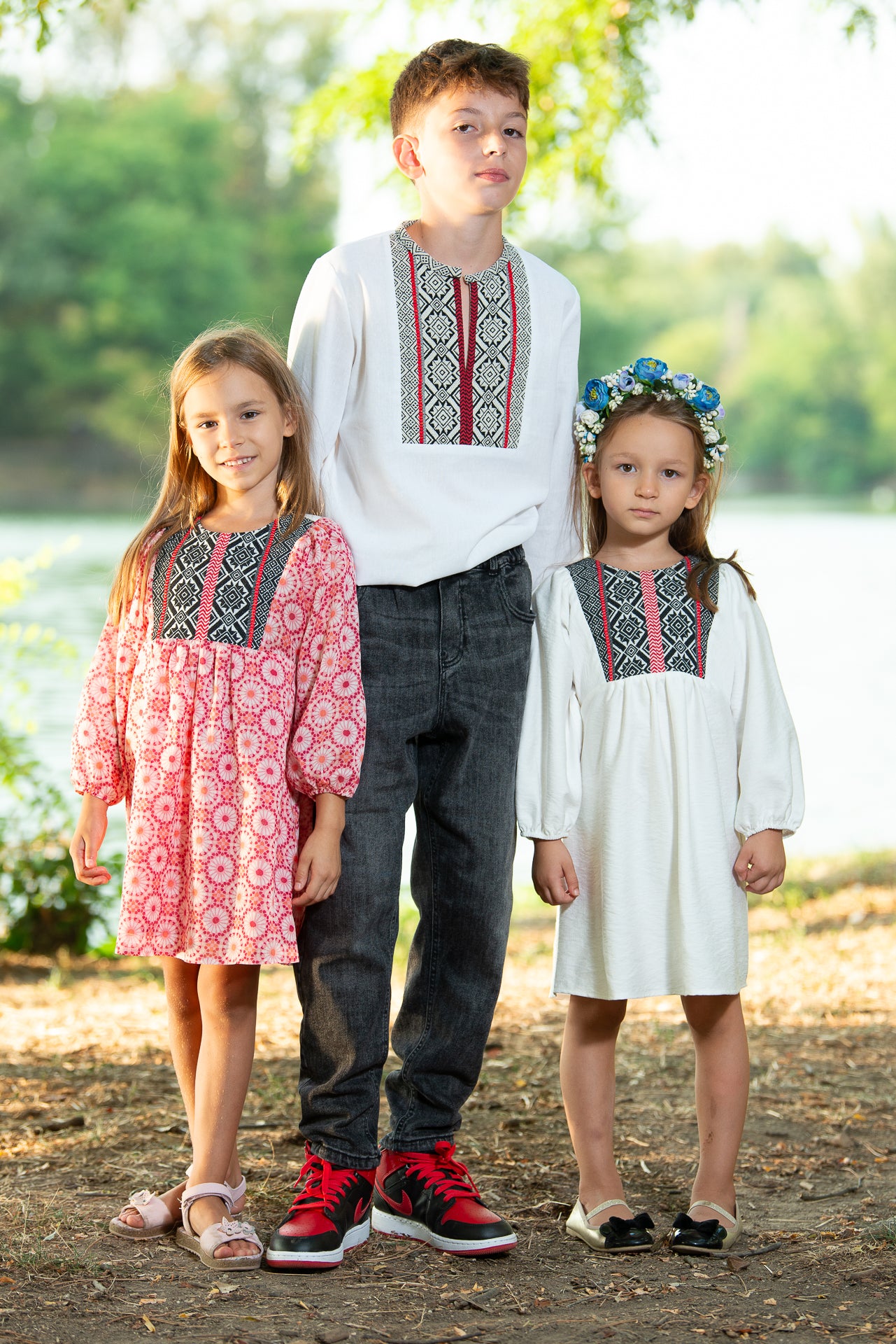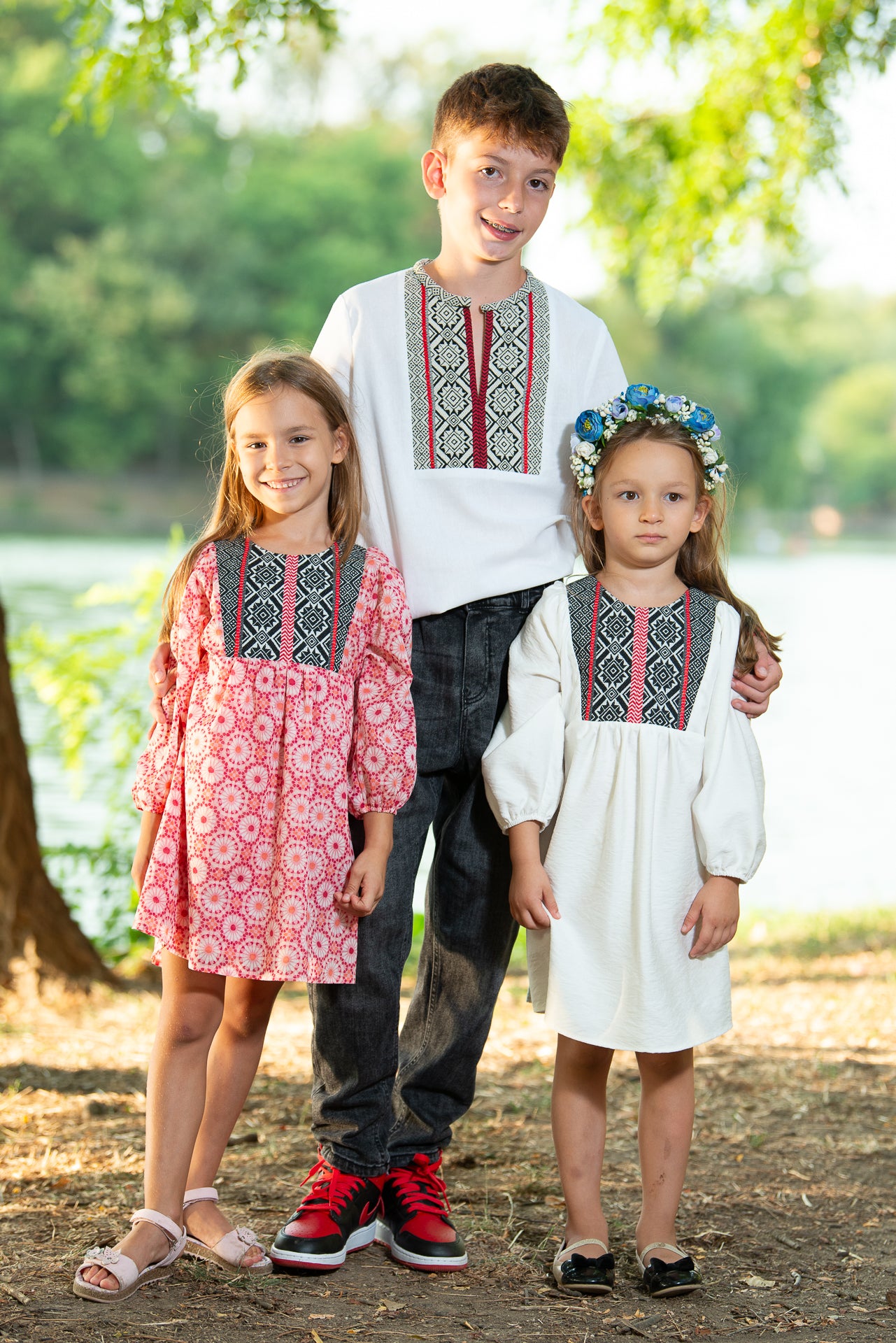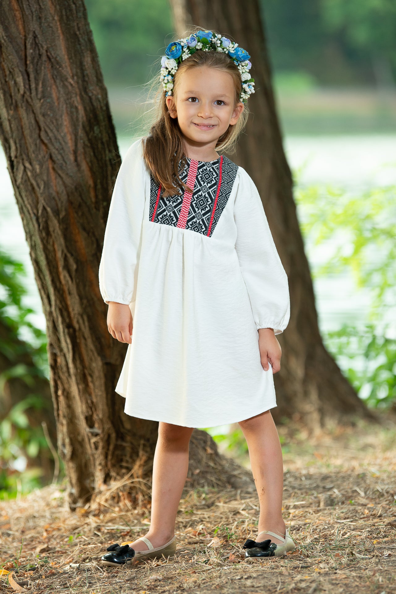 Rochița tradițională Ofelia de fetițe are o croiala midi,