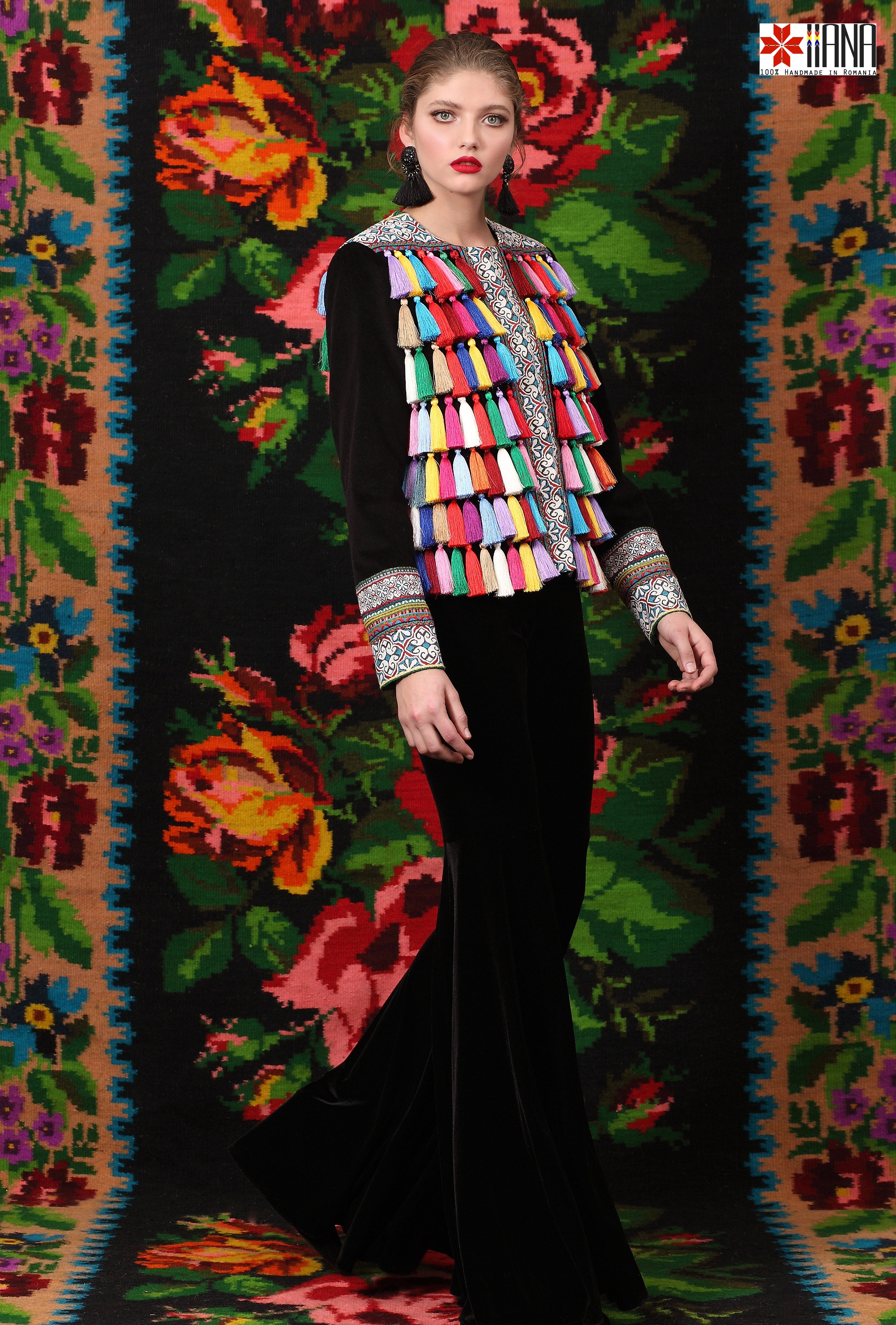 Sacou de Bistrita Dama Tesut cu Motive Etnice Romanesti
