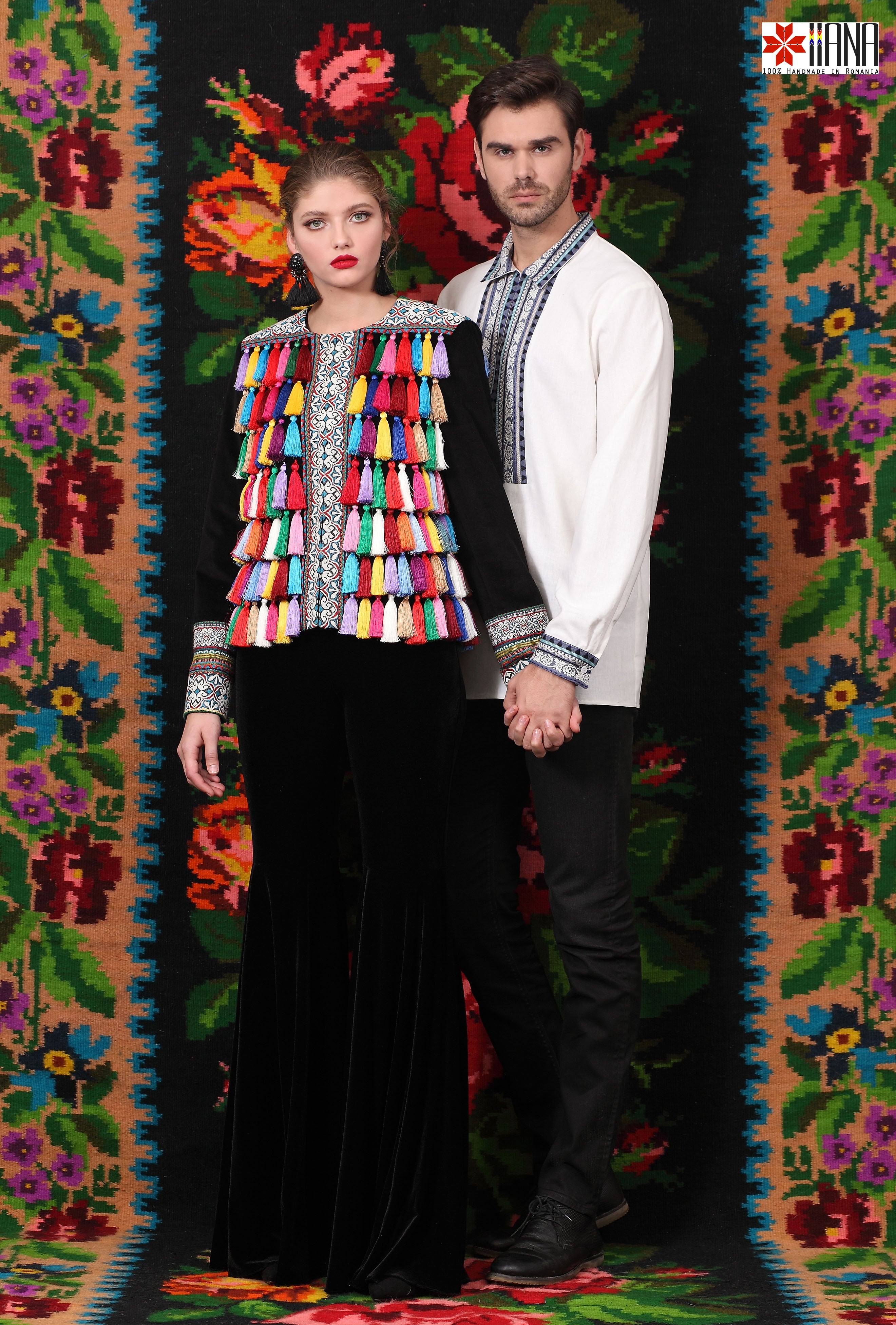 de ciucuri din mătase, lucrați manual. Sacoul este încadrat pe umeri, piept și manșete cu