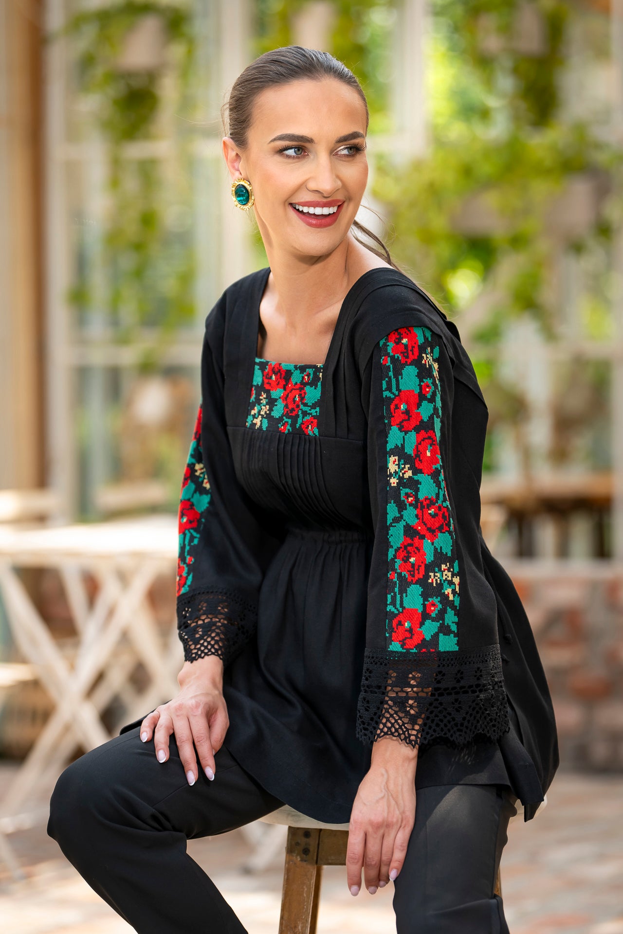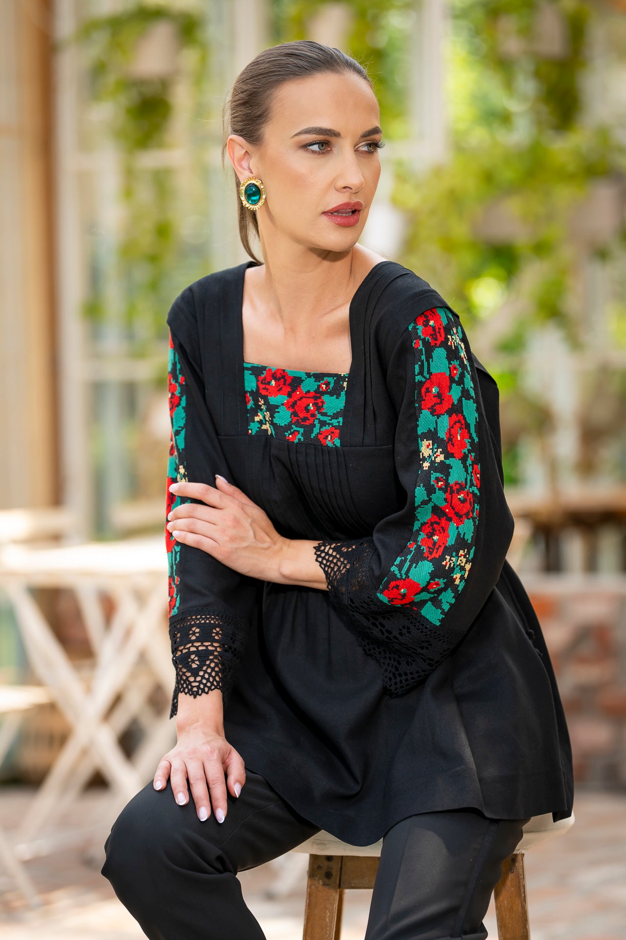 Bluza stilizată IIANA este piesa care va atrage admirativ toată atenția și care reunește armonios elementele arhaice cu cele moderne.