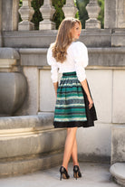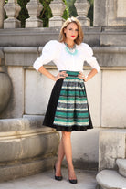 Fusta Semiclos cu Oprege Smarald Stilizata cu Motive Romanesti Traditionale