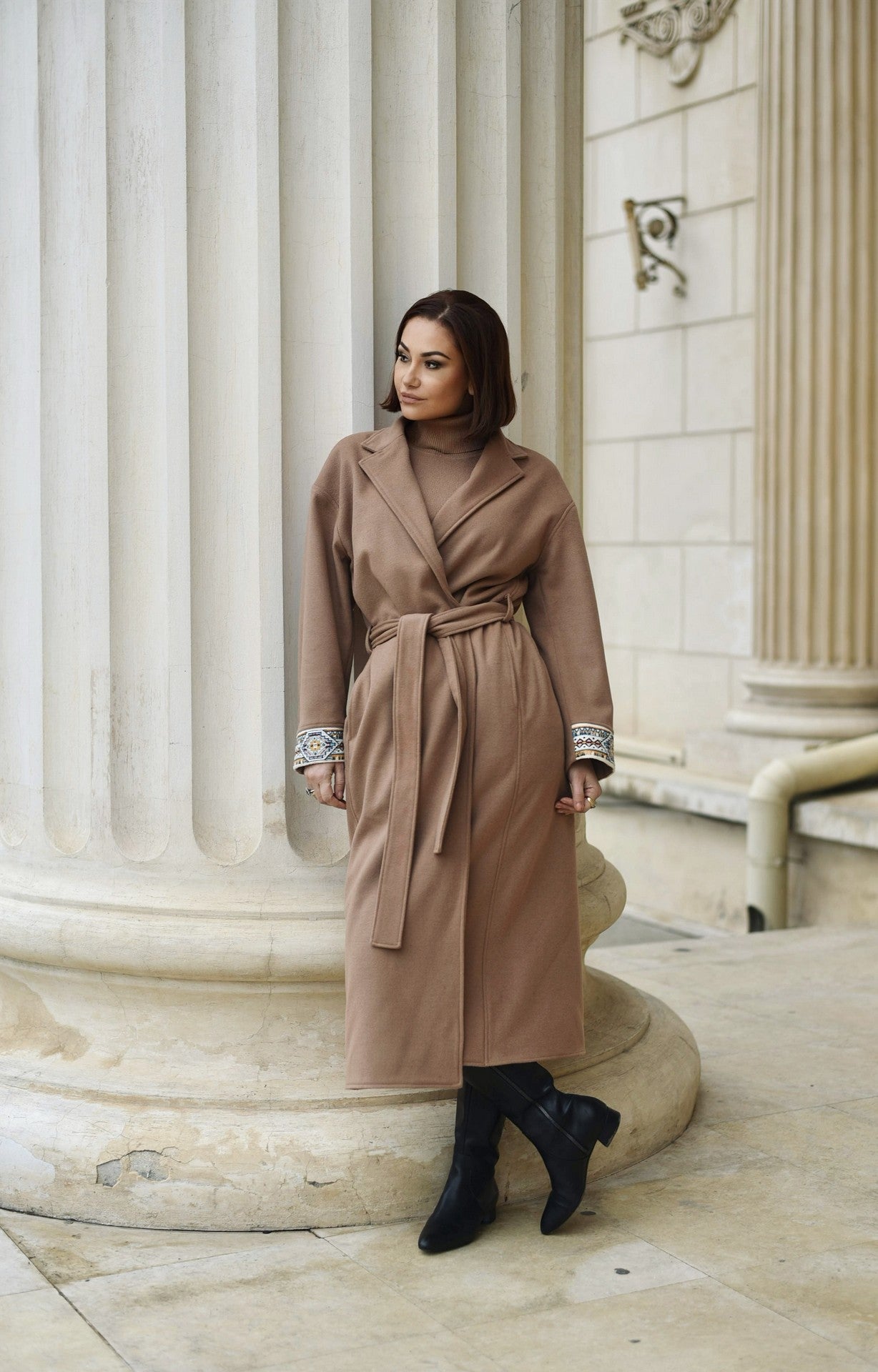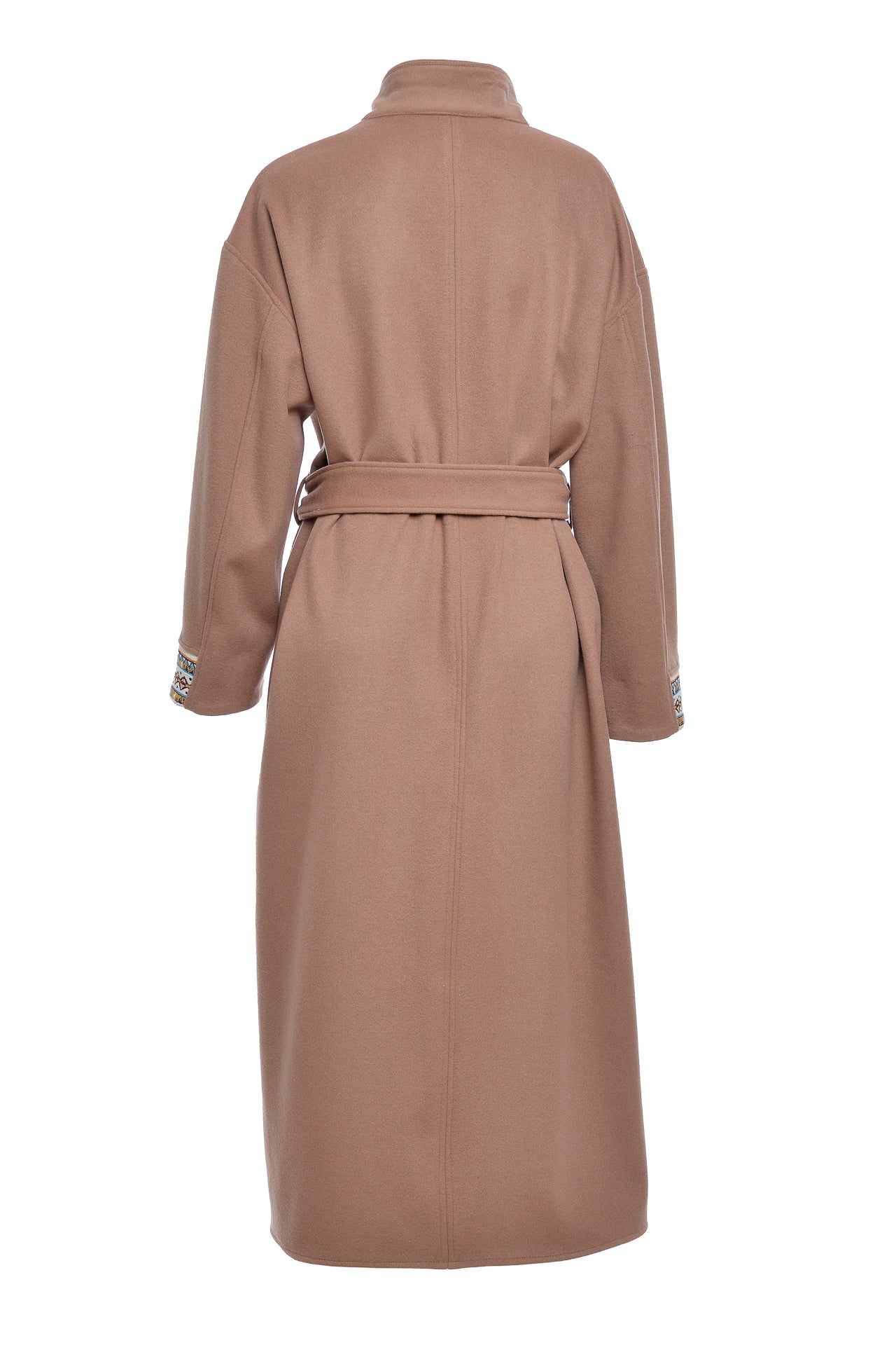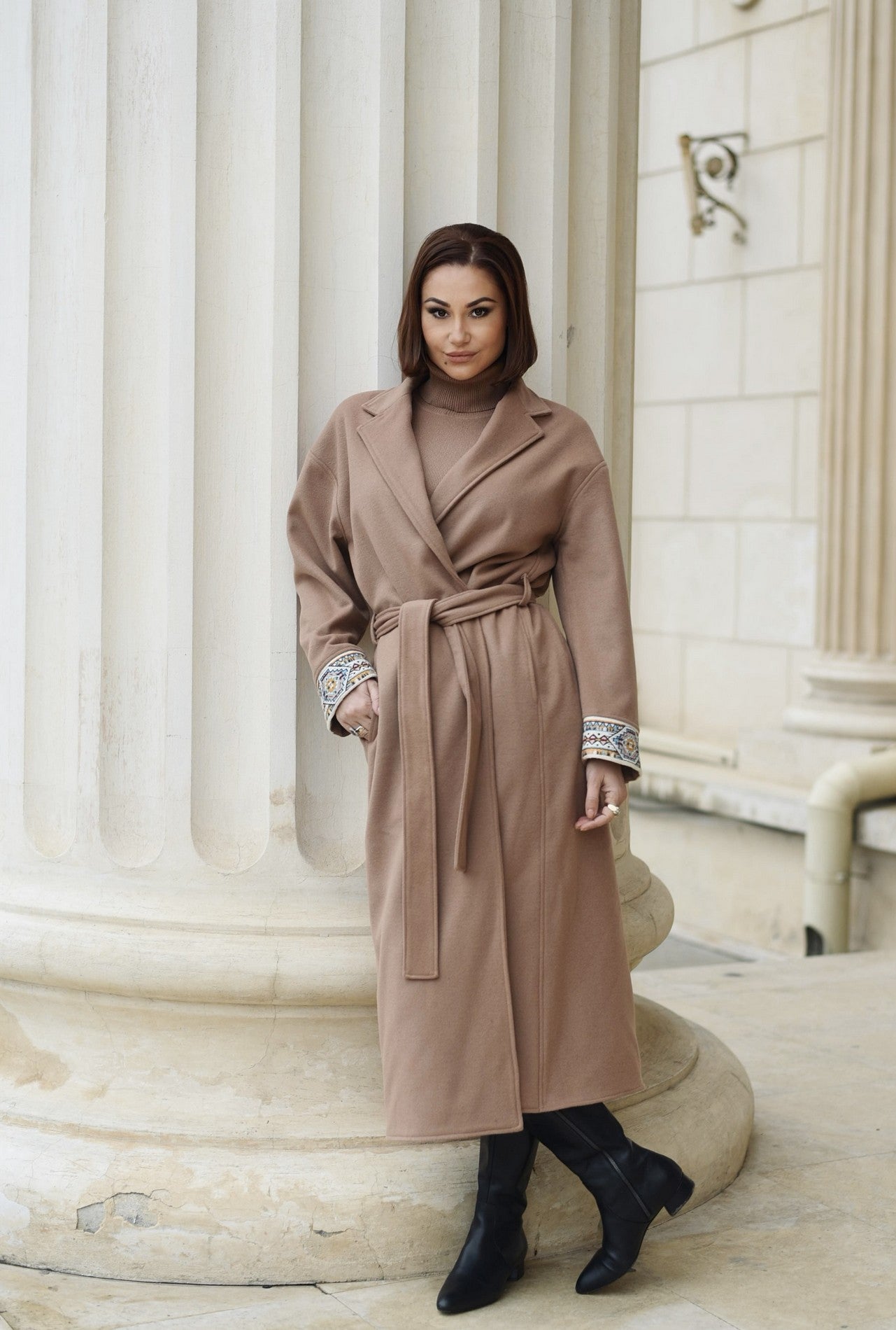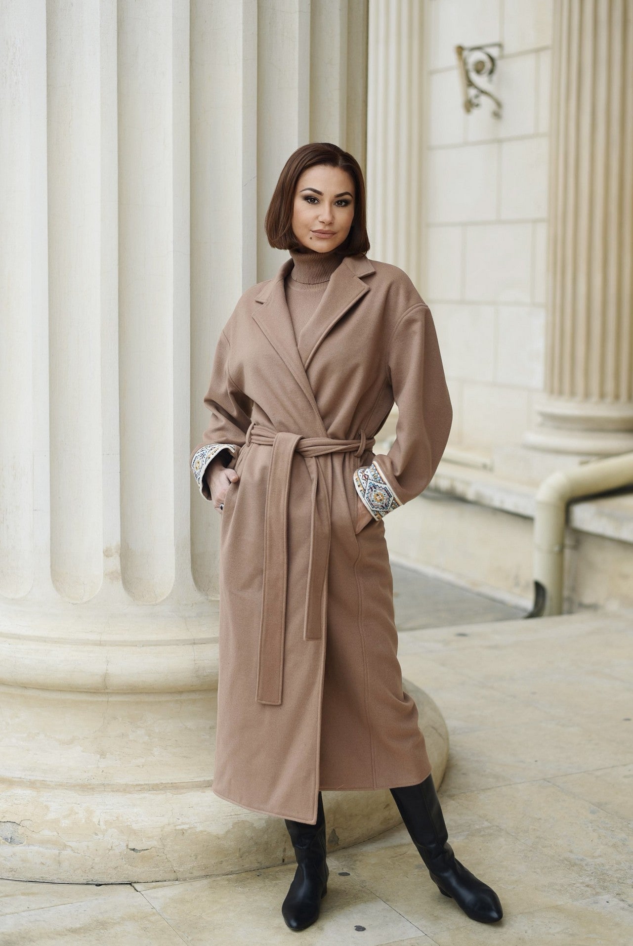 Palton Lung Din Stofa de Lana Si Casmir Bej