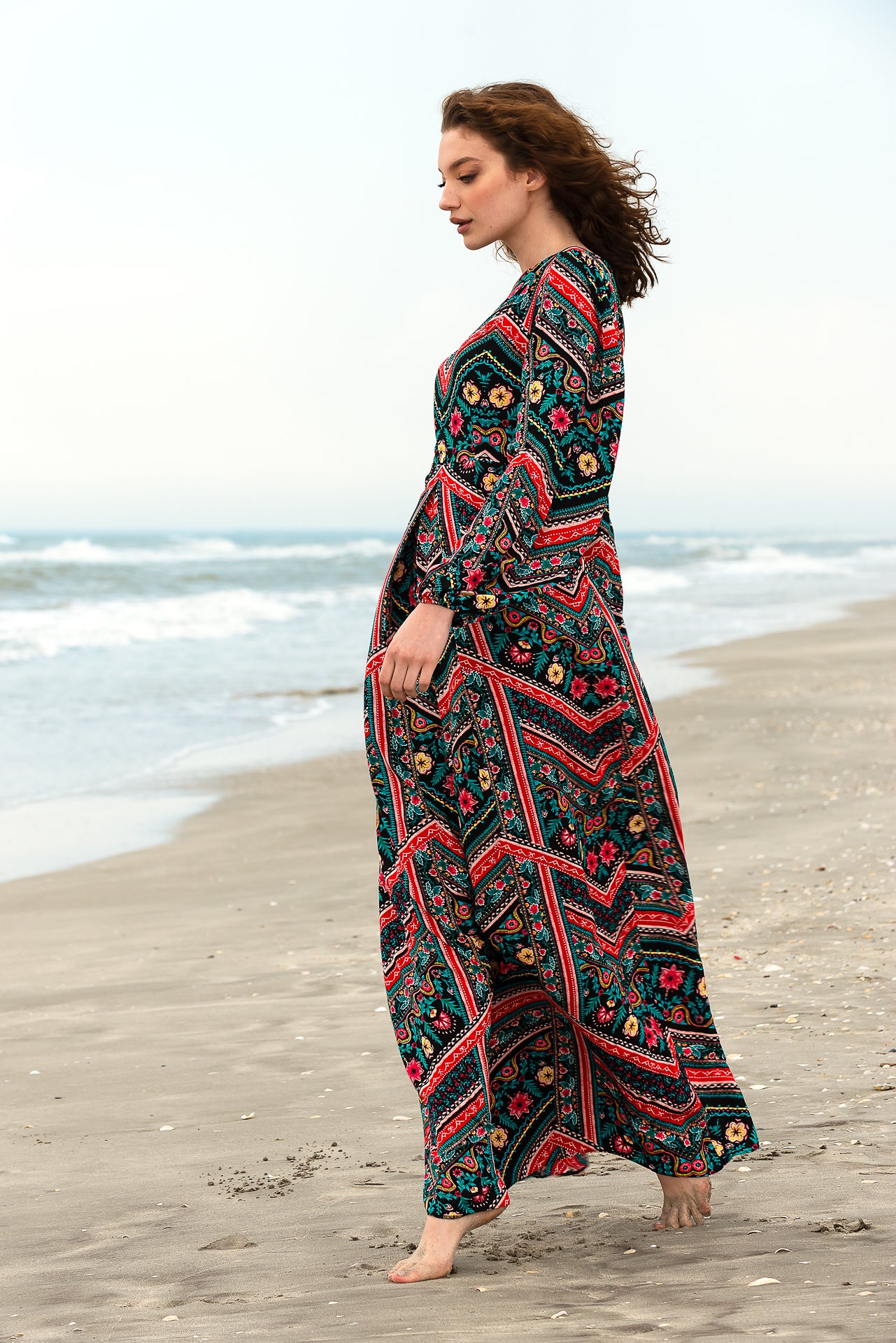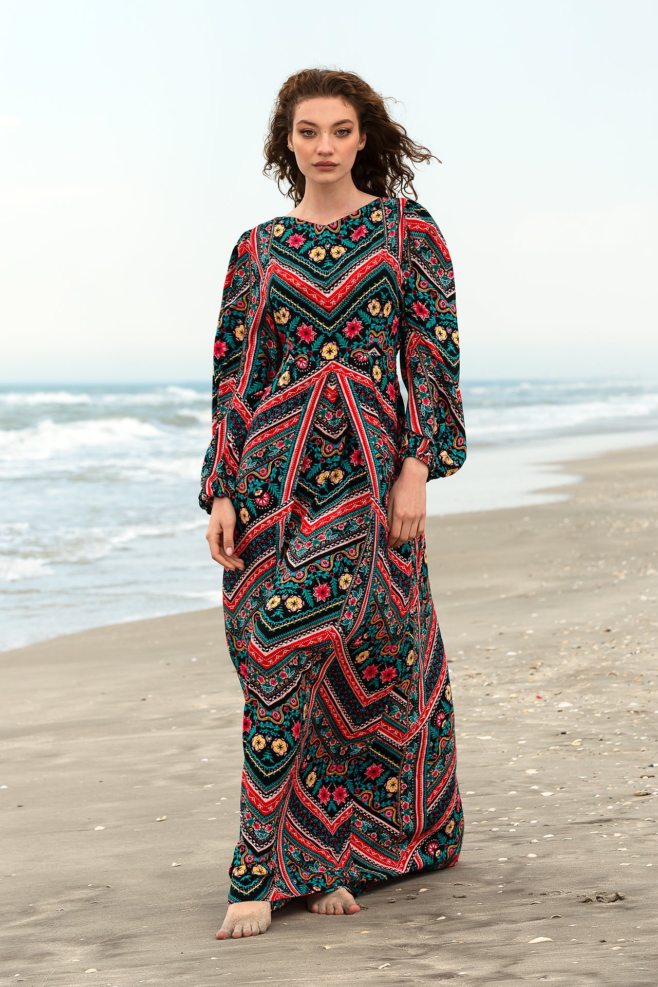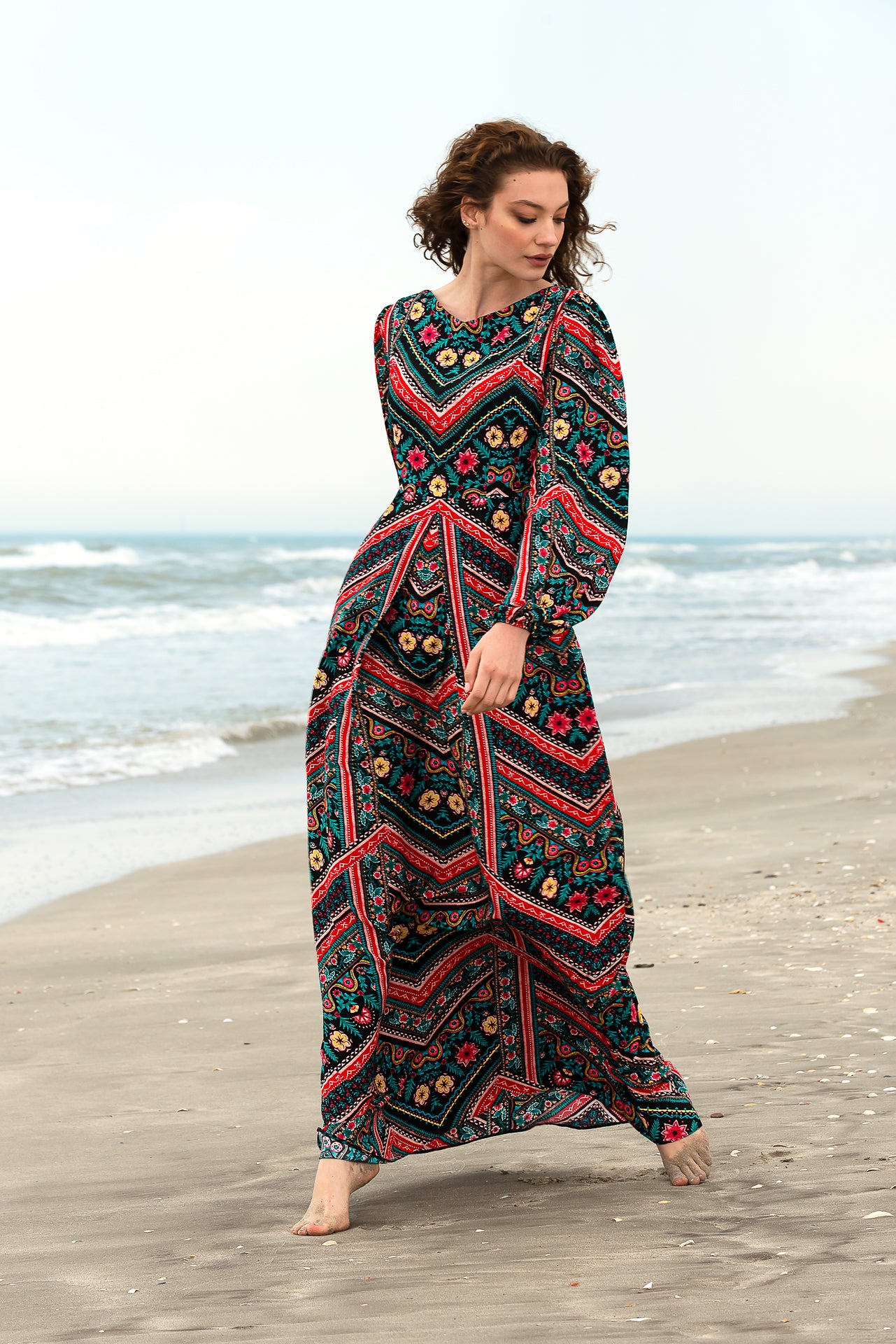 Rochia lungă Zig Zag este confecționată din viscoză