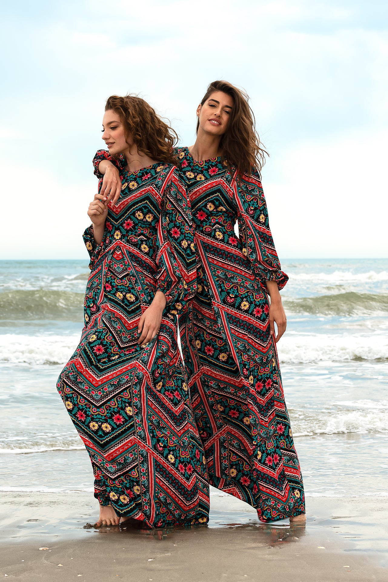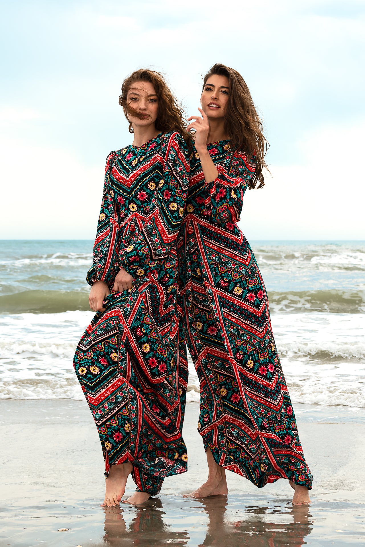 Are un decolteu bărcuță, iar pe bust și pe talie imprimeul este mixat din mai multe piese pentru accentuarea taliei dar și pentru un efect maxim de alungire a siluetei. Din talie rochia este completată de pliuri și pense cusute, iar imprimeul este poziționat vertical. Pentru a obține efectul scontat de alungire recomandăm să purtați rochia Zig Zag cu tocuri sau cu platforme. Din umăr până la tiv rochia are lungimea de 150cm.