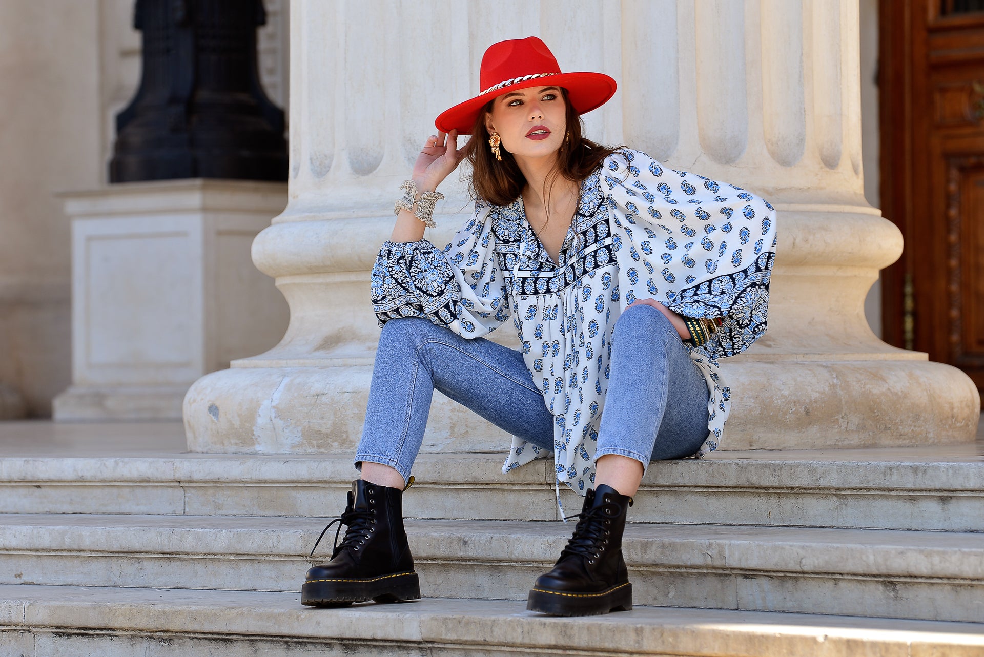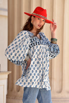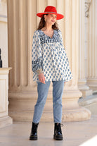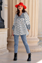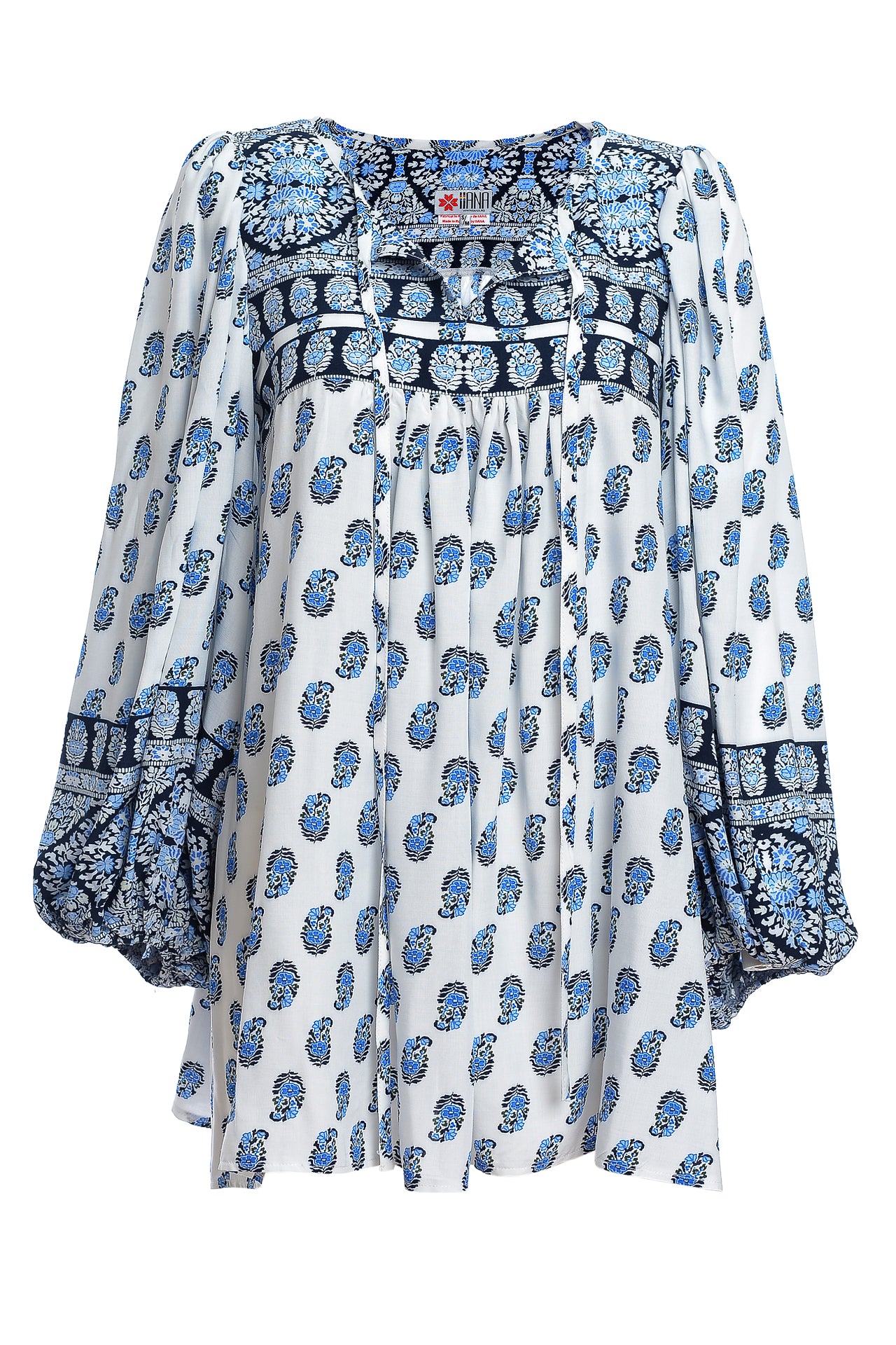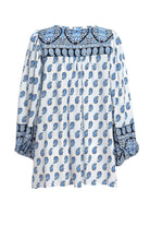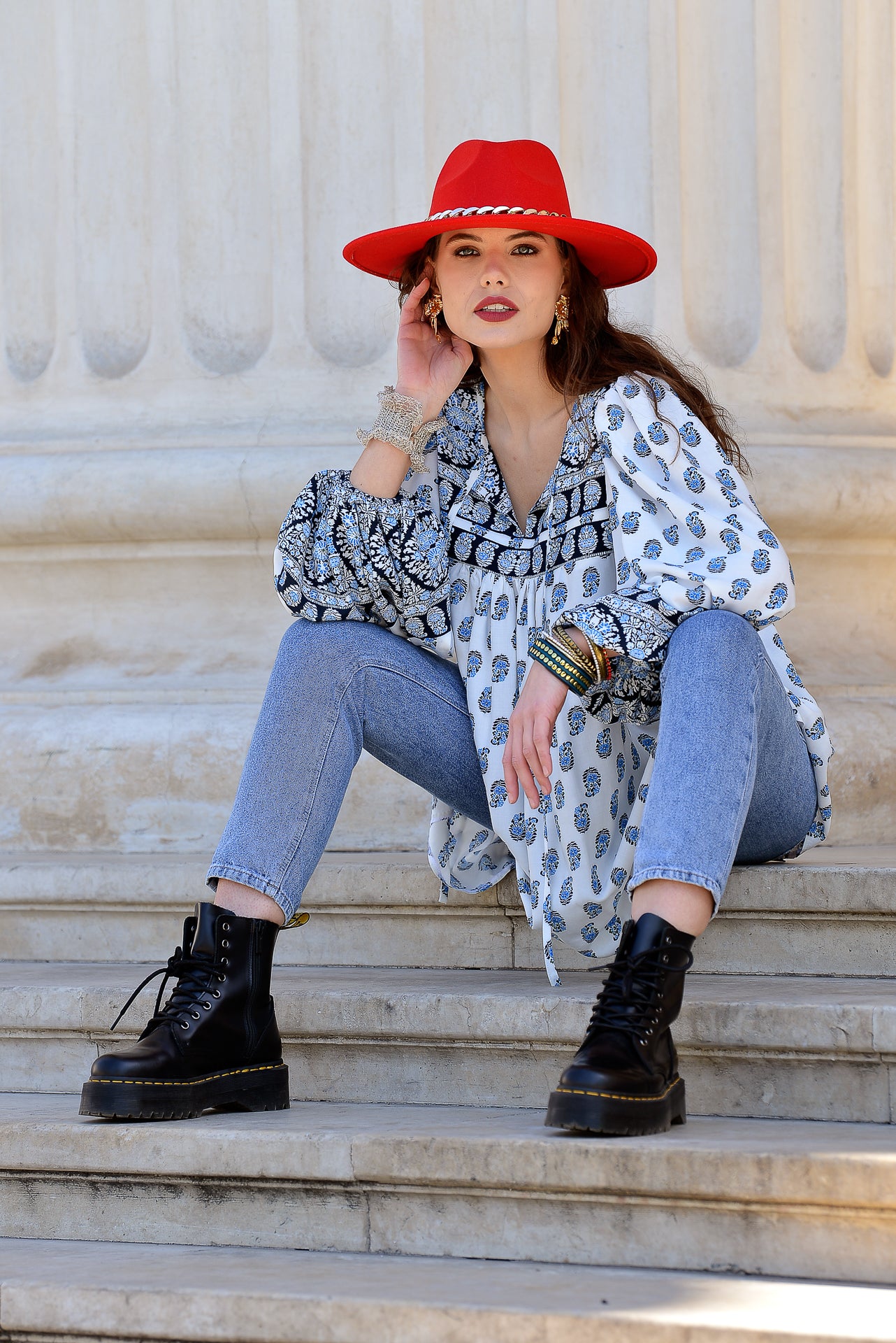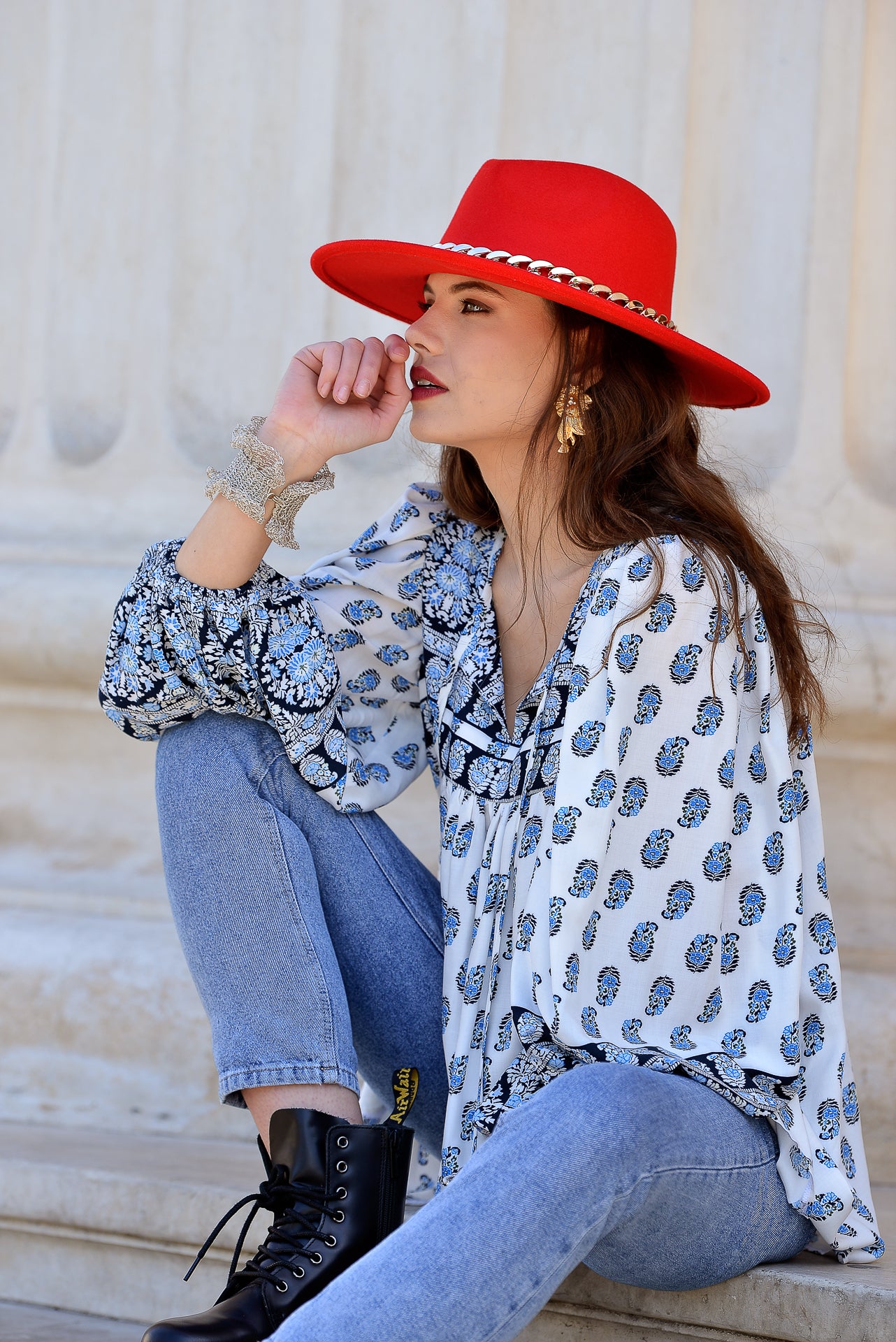 Bluza Boho Aria este confecționată din vâscoză imprimată digital cu motive florale și geometrice. Are un croi în stilul boho-chic, cu volumetrie amplă. Prezintă mâneci bufante, care conferă designului un look fresh, tineresc.