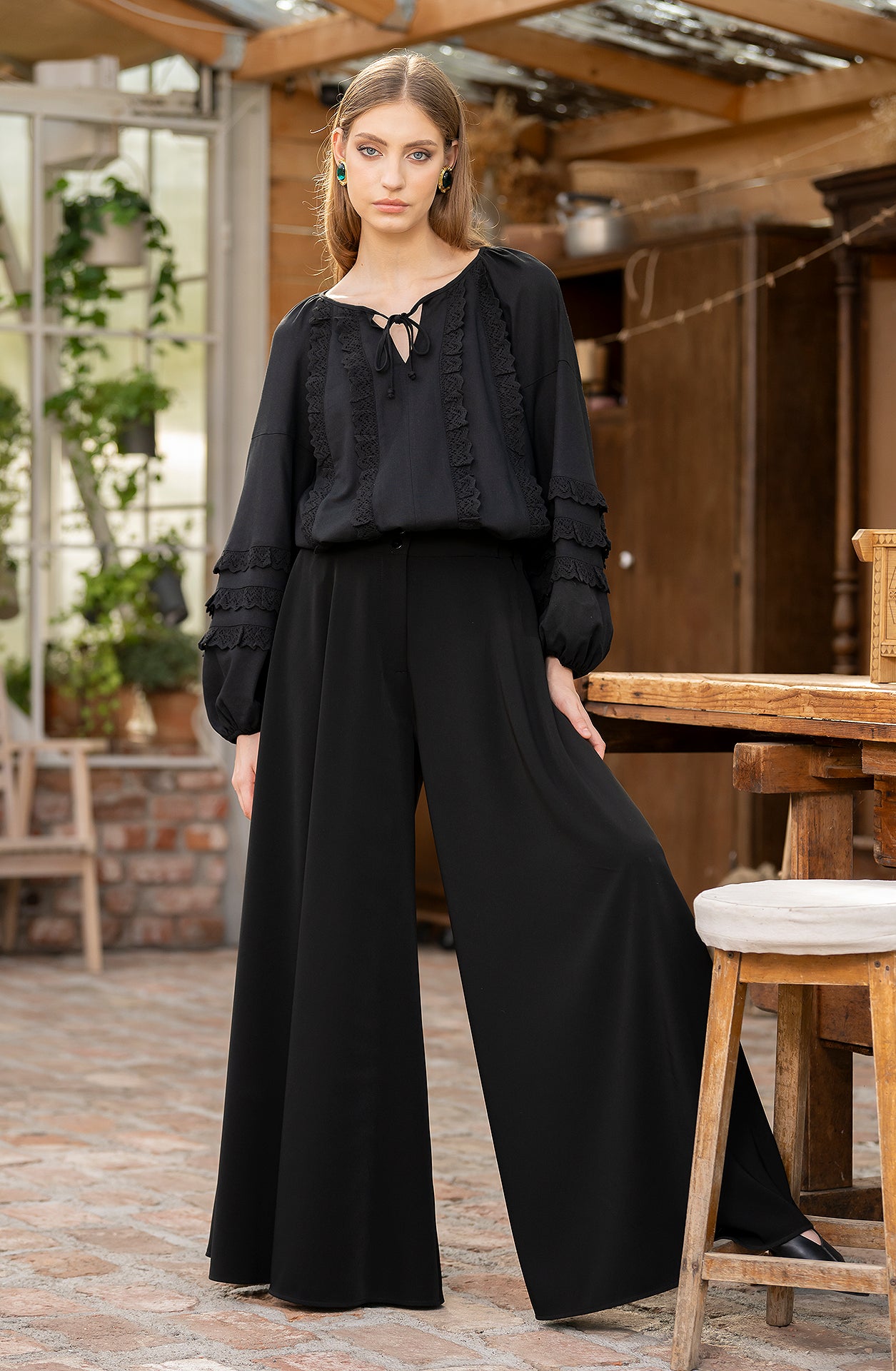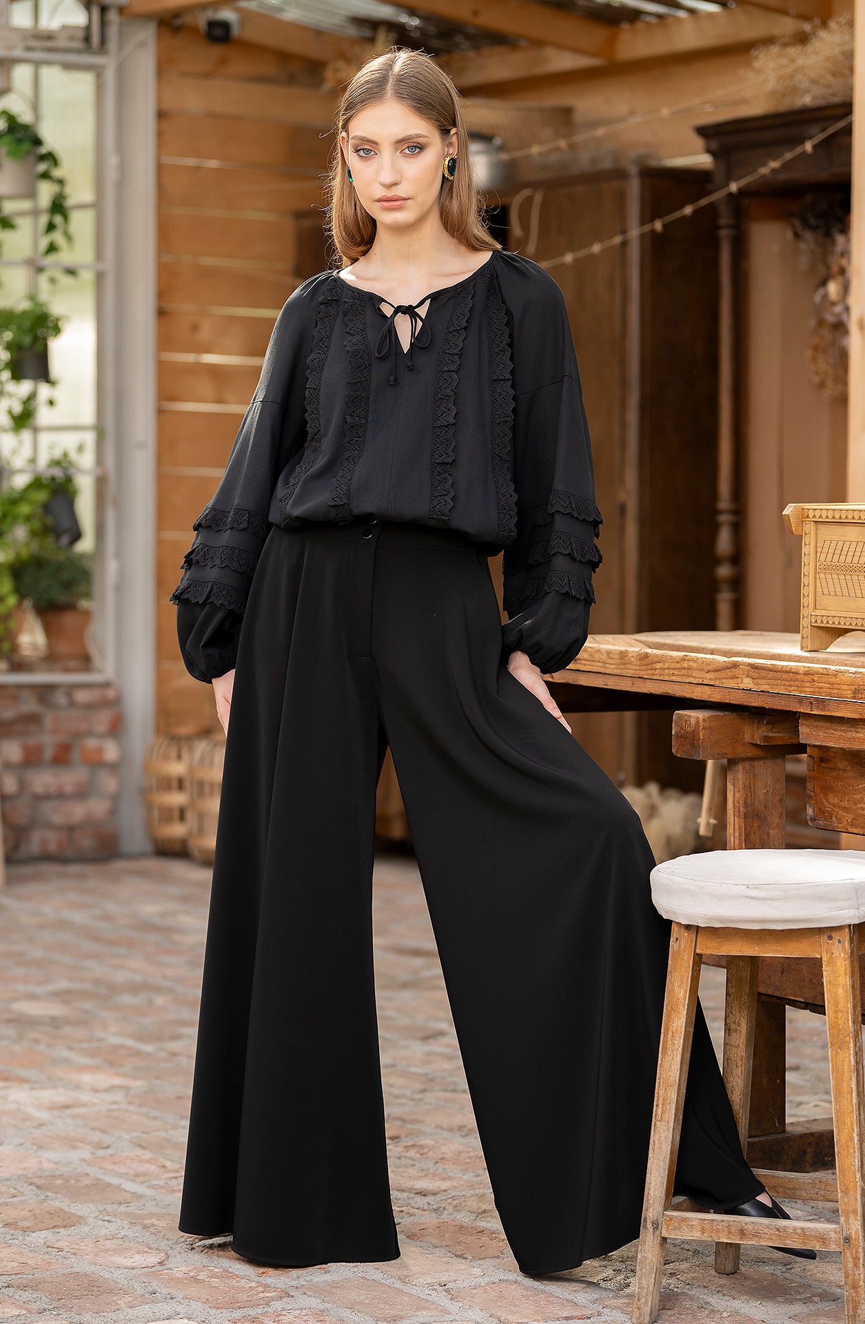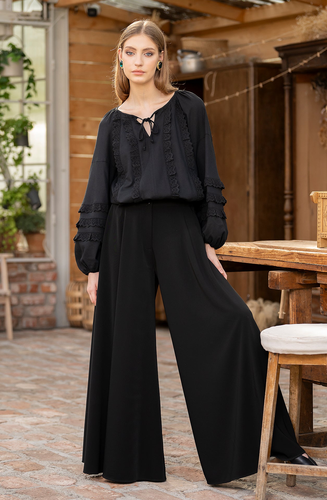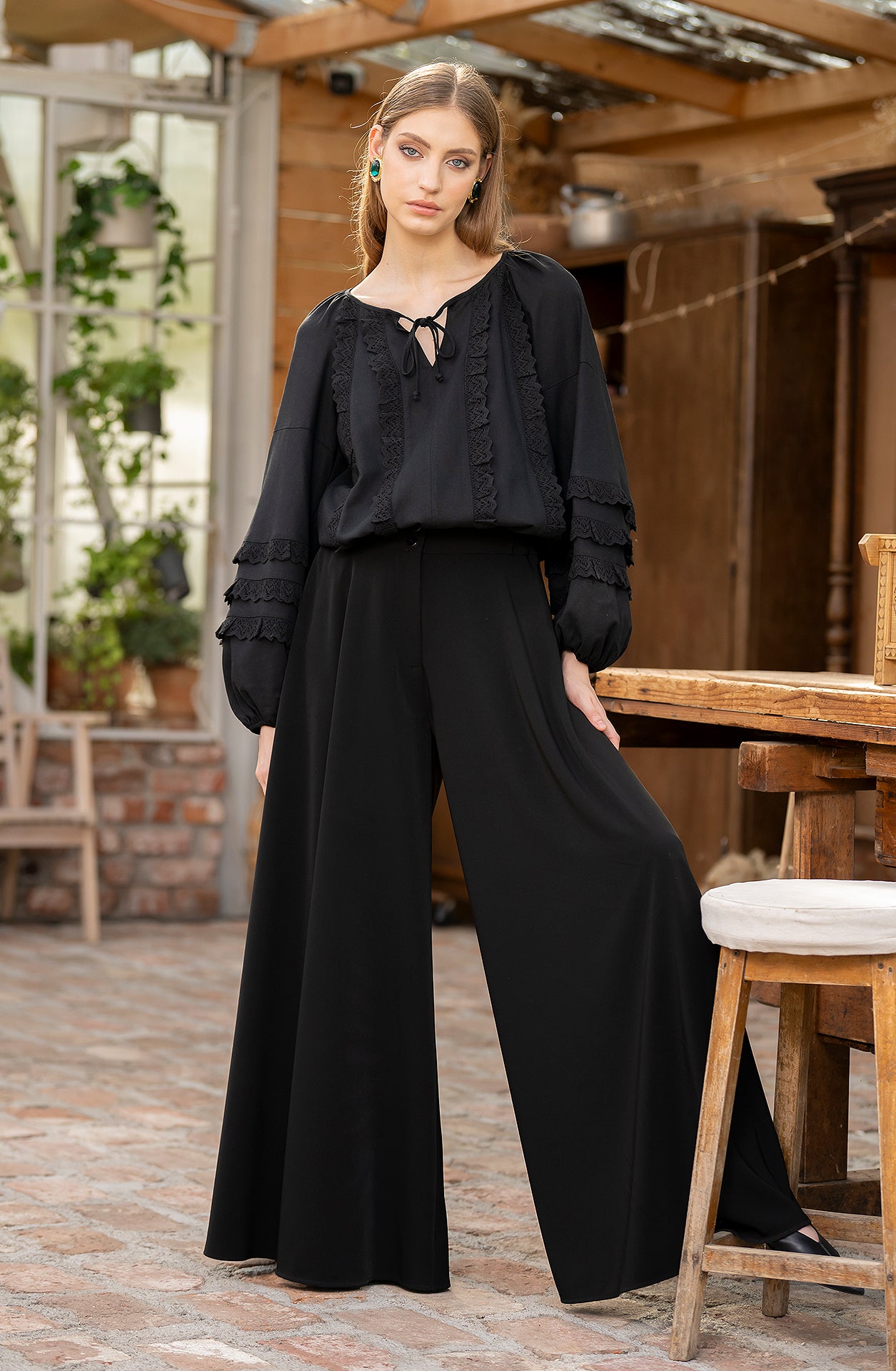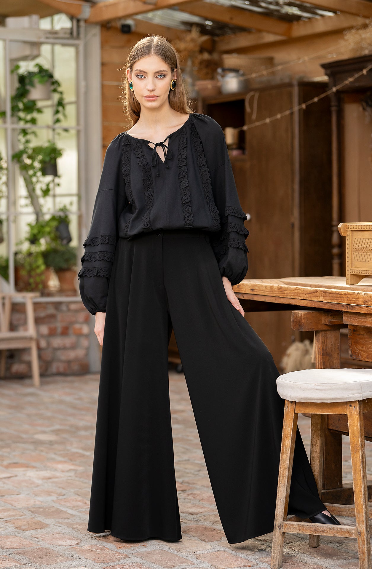 - Pantofi cu toc, sandale sau bocanci - Da, ai citit bine. Bluzele de tip ie, cu iz modern pot fi purtate atât cu stiletto eleganți, cât și cu bocanci colorați sau platforme.
